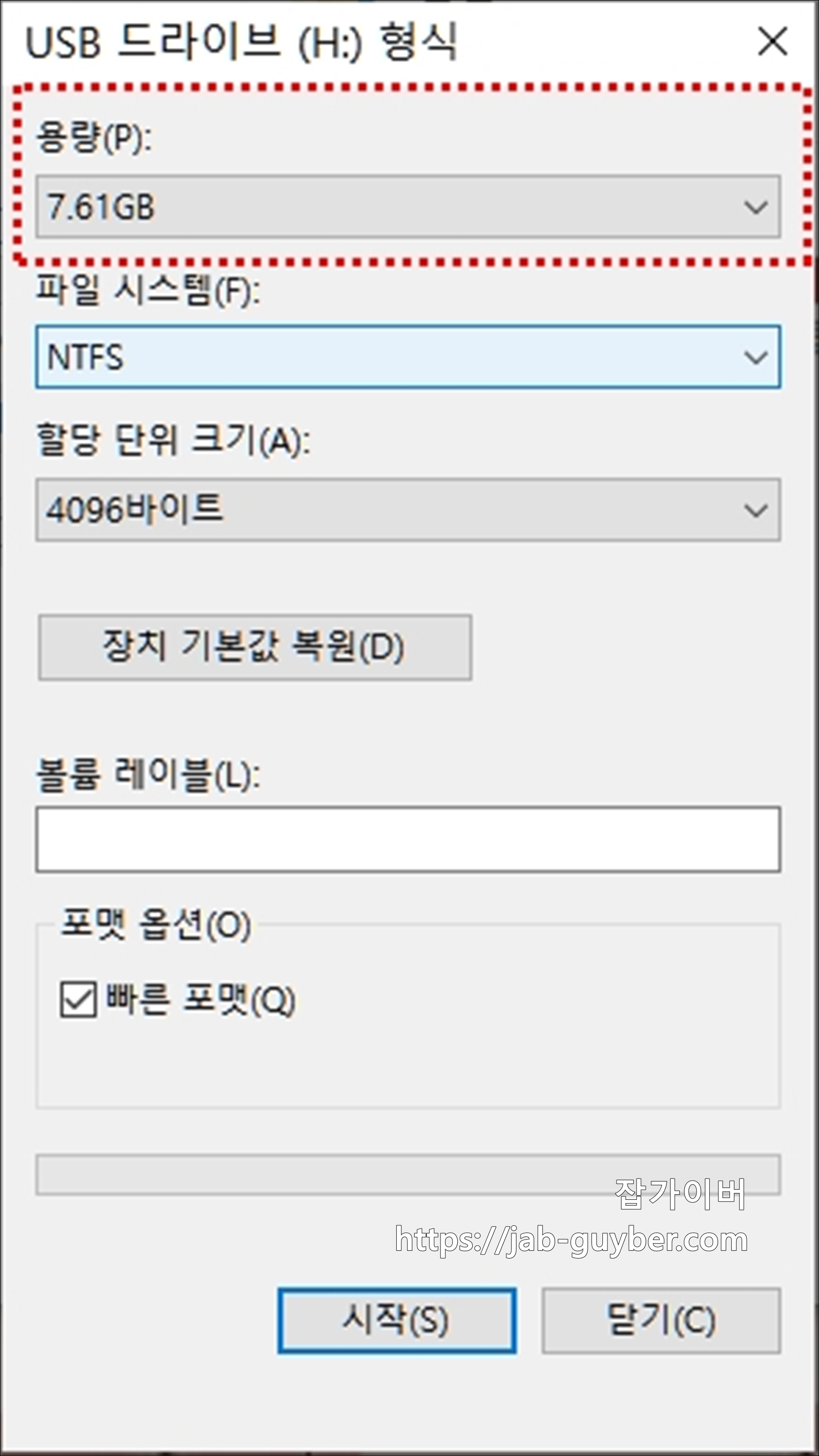 USB 외장하드 포맷