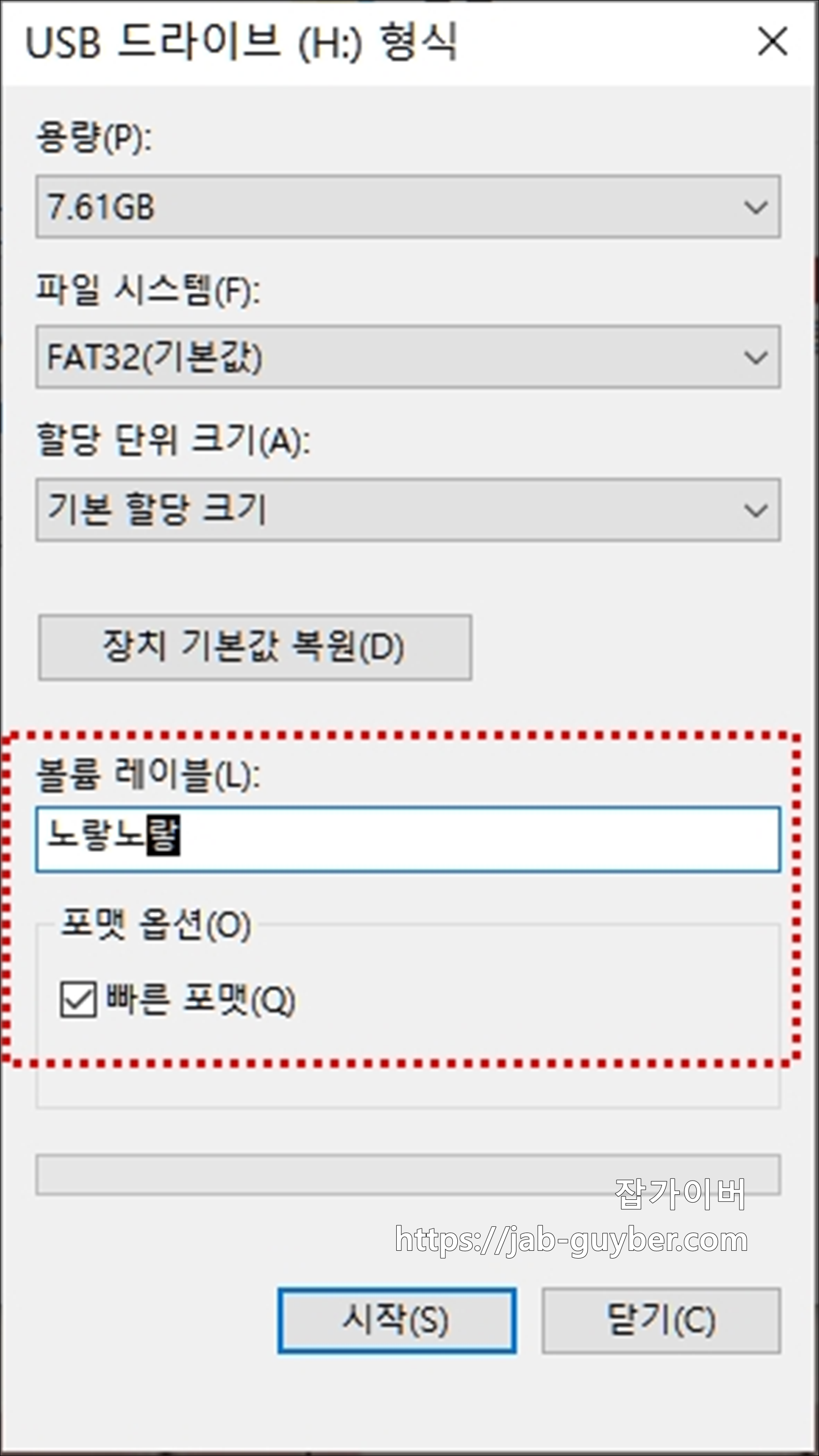 이렇게 usb 드라이브 포맷이 완료됩니다.