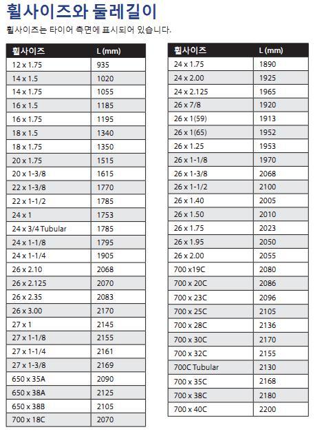 휠 사이즈 와 둘레길이