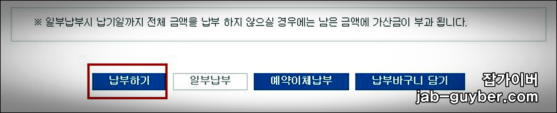 이후 한번에 모두 납부를 하고자 하면 "납부하기"를 선택합니다.