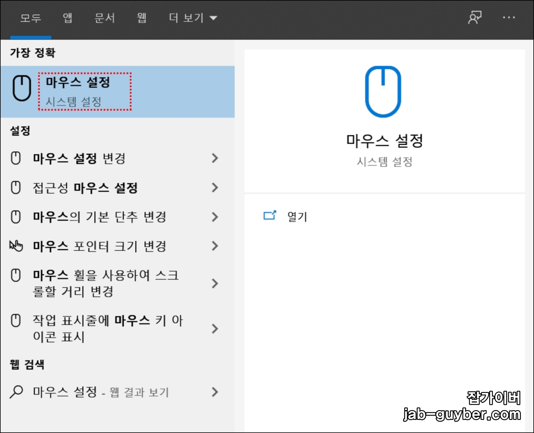 시작에서 마우스 설정을 입력해서 실행합니다.