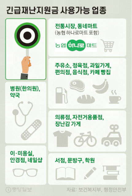 행정안전부는 선불카드도 신용·체크카드 수준으로 사용 범위를 넓혀달라고 각 지방자치단체에 권고했으며 긴급재난지원금에 지역 제한이 있다는 것도 참고하세요