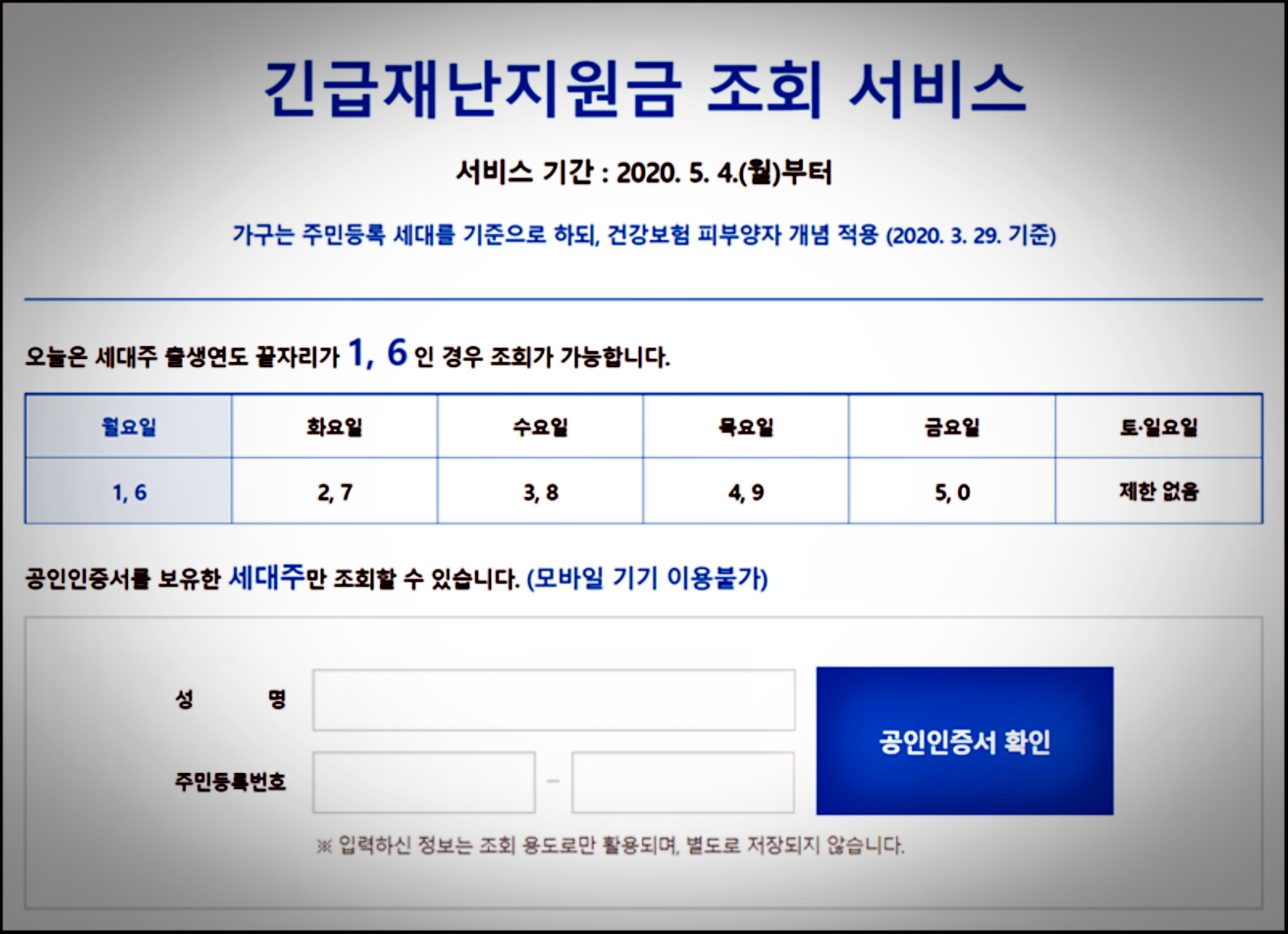 16일 이후부터는 요일제와 상관없이 신청이 가능하며 11일부터 16일까지는 "긴급재난지원금"신청자가 몰리는 것을 방지하기 위함입니다.