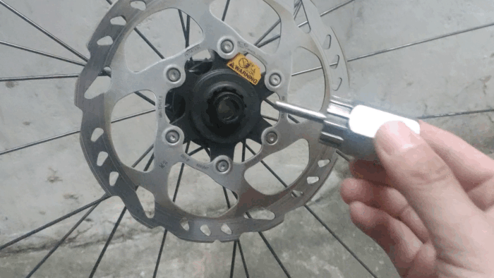 기본적으로 시마노에서는 센터락이라는 결합방식으로 로터가 체결되어 있는데 별도의 육각공구 분해 없이 스프라켓 리무버를 이용해서 간단하게 교체를 할 수 있습니다.
