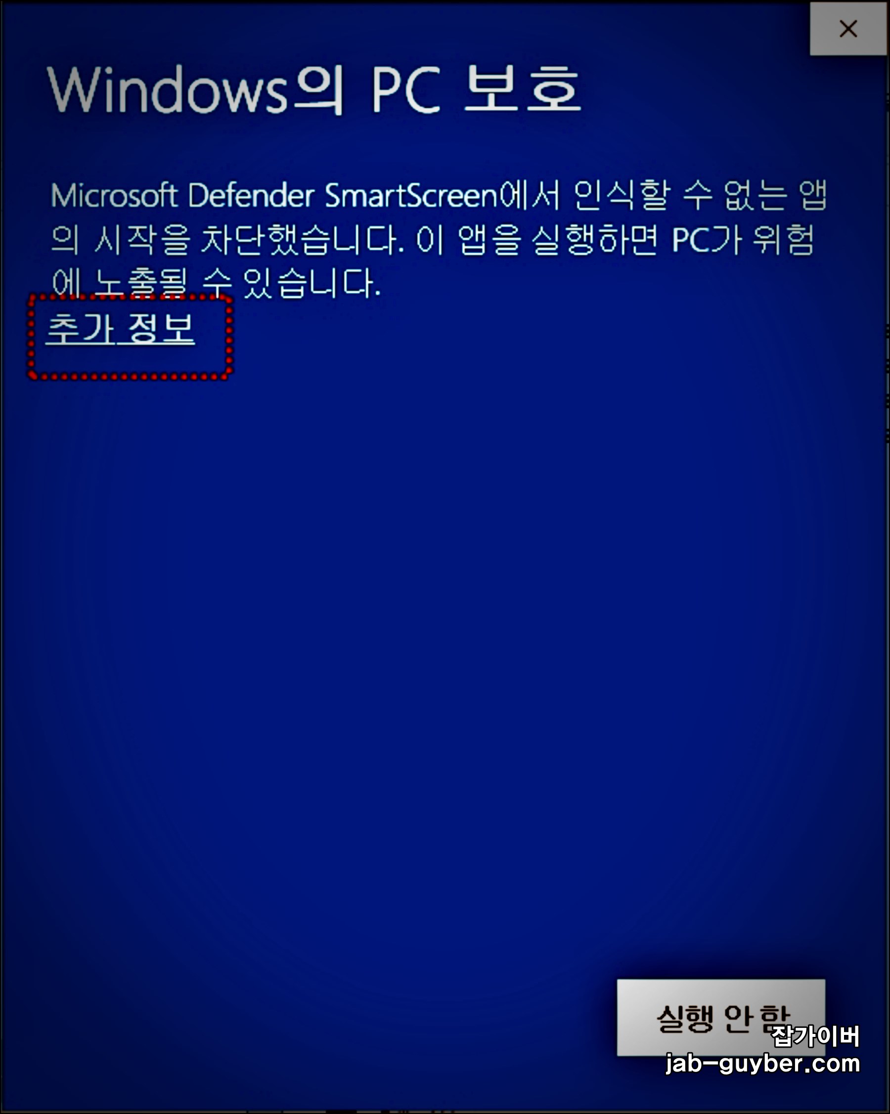 간혹 크랙파일이기 때문에 "윈도우 PC보호"가 실행되는 경우가 있습니다.