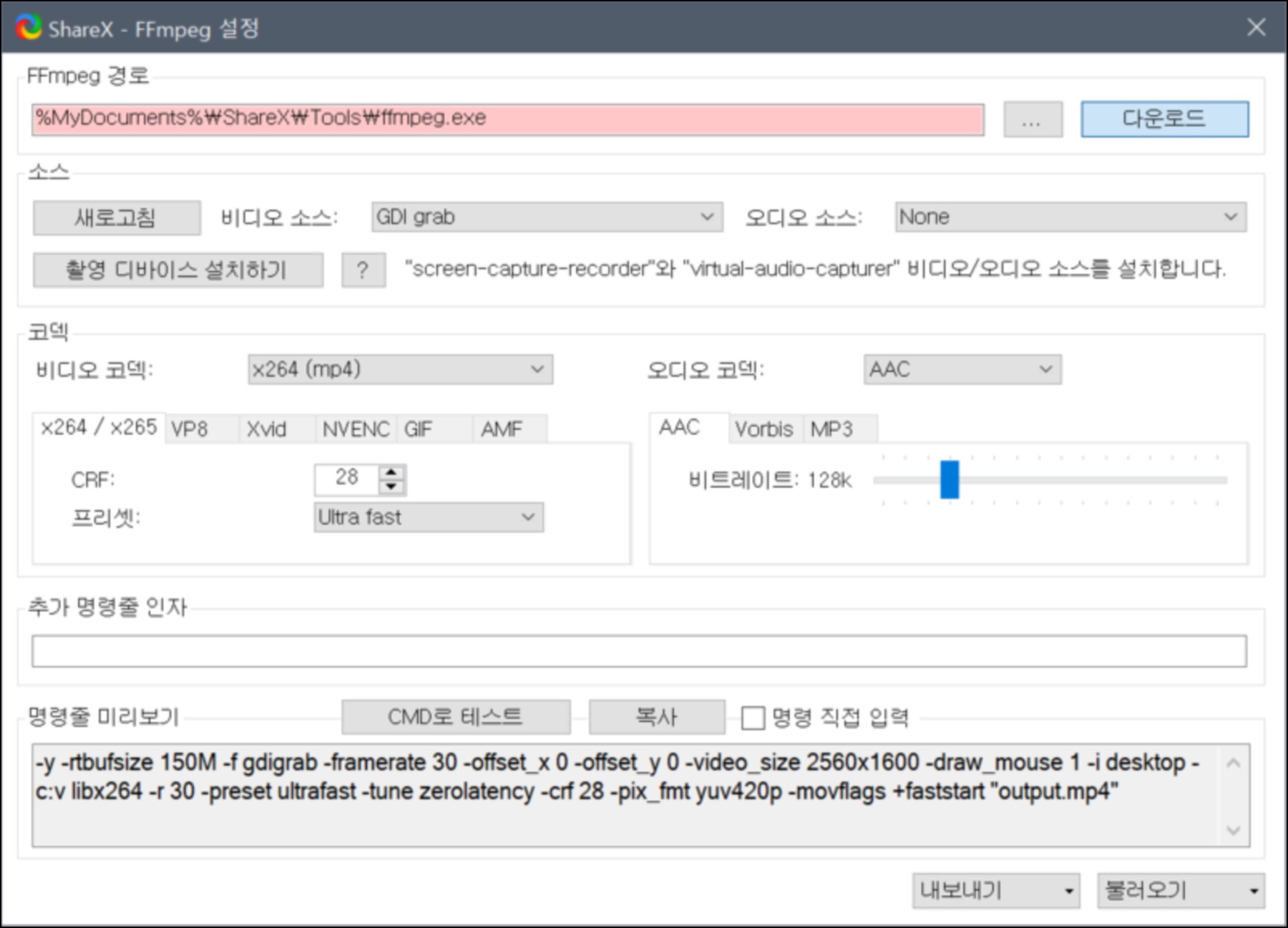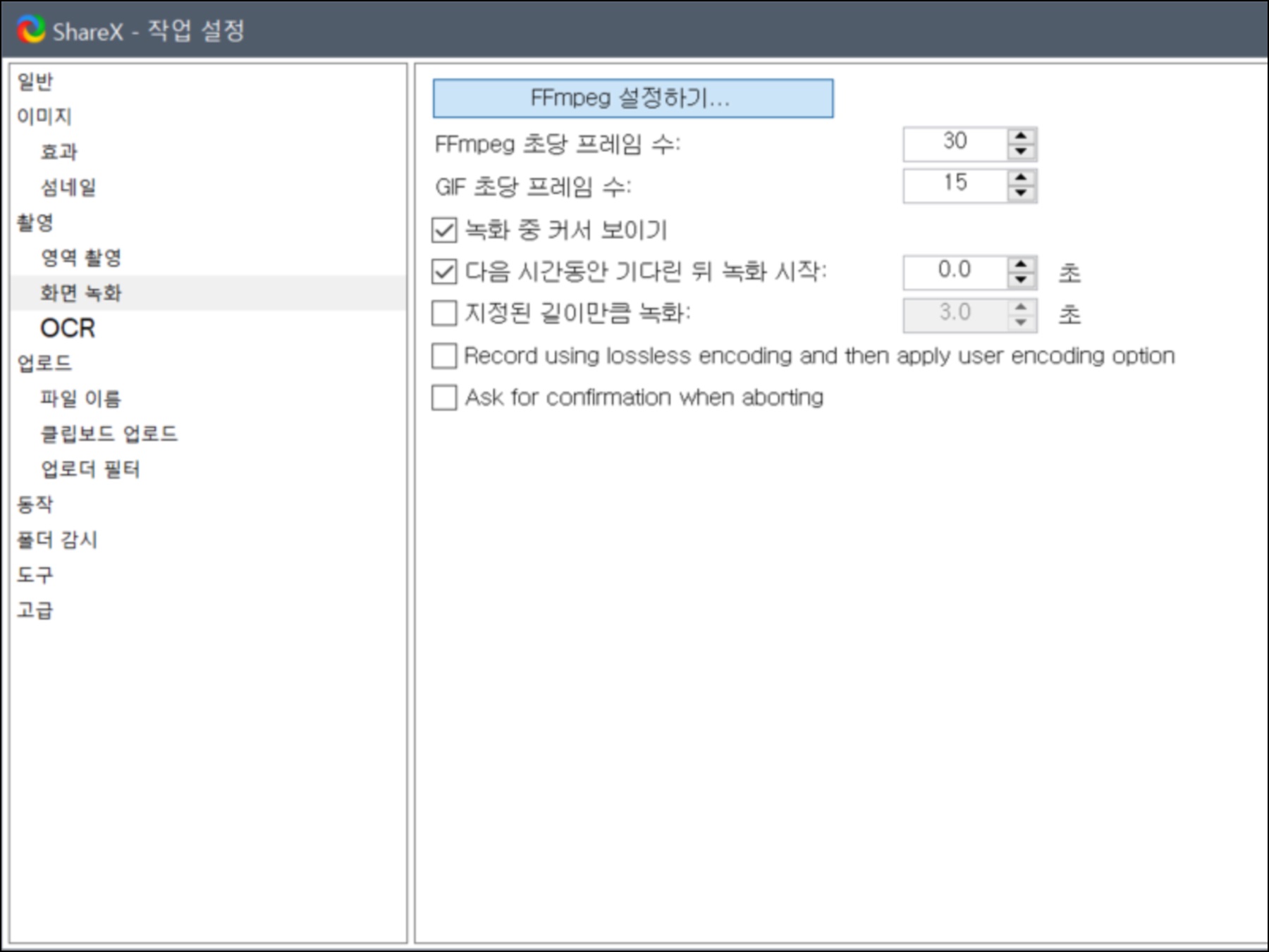 화면 녹화에서 필요한 FFmpeg 외에 다양한 녹화 기능들입니다.