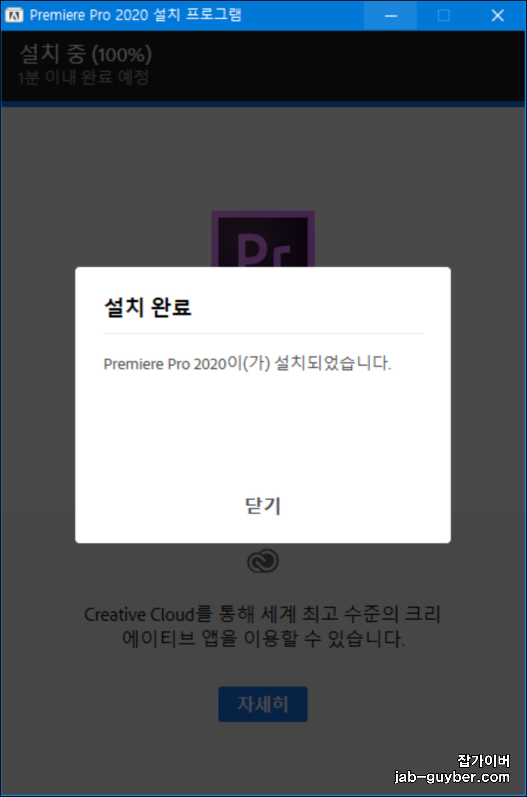 프리미어 2020 체험판이 설치 완료되었습니다.