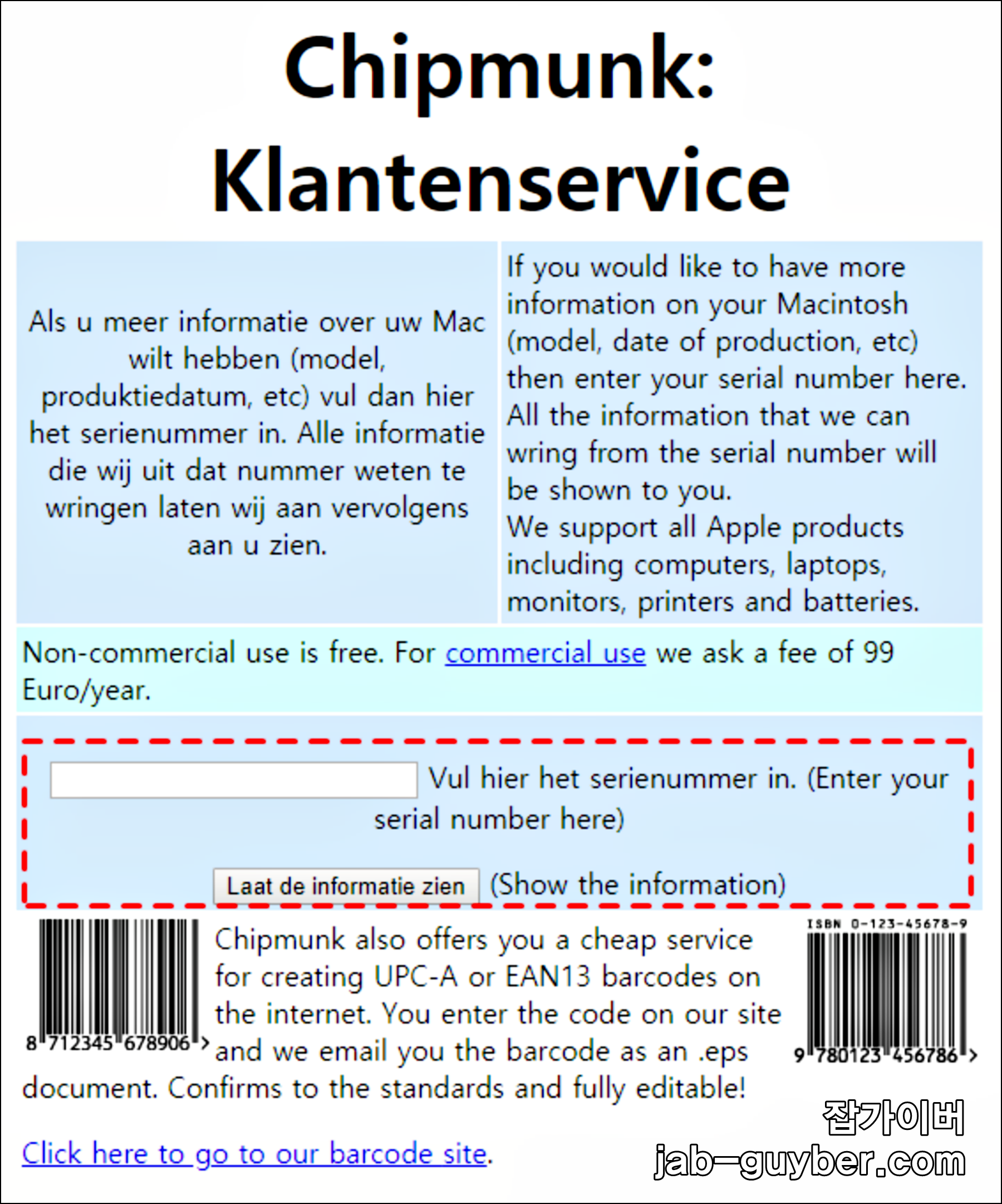 Als u meer informatie over uw Mac wilt hebben (model, produktiedatum, etc) vul dan hier het serienummer in. Alle informatie die wij uit dat nummer weten te wringen laten wij aan vervolgens aan u zien. If you would like to have more information on your Maci