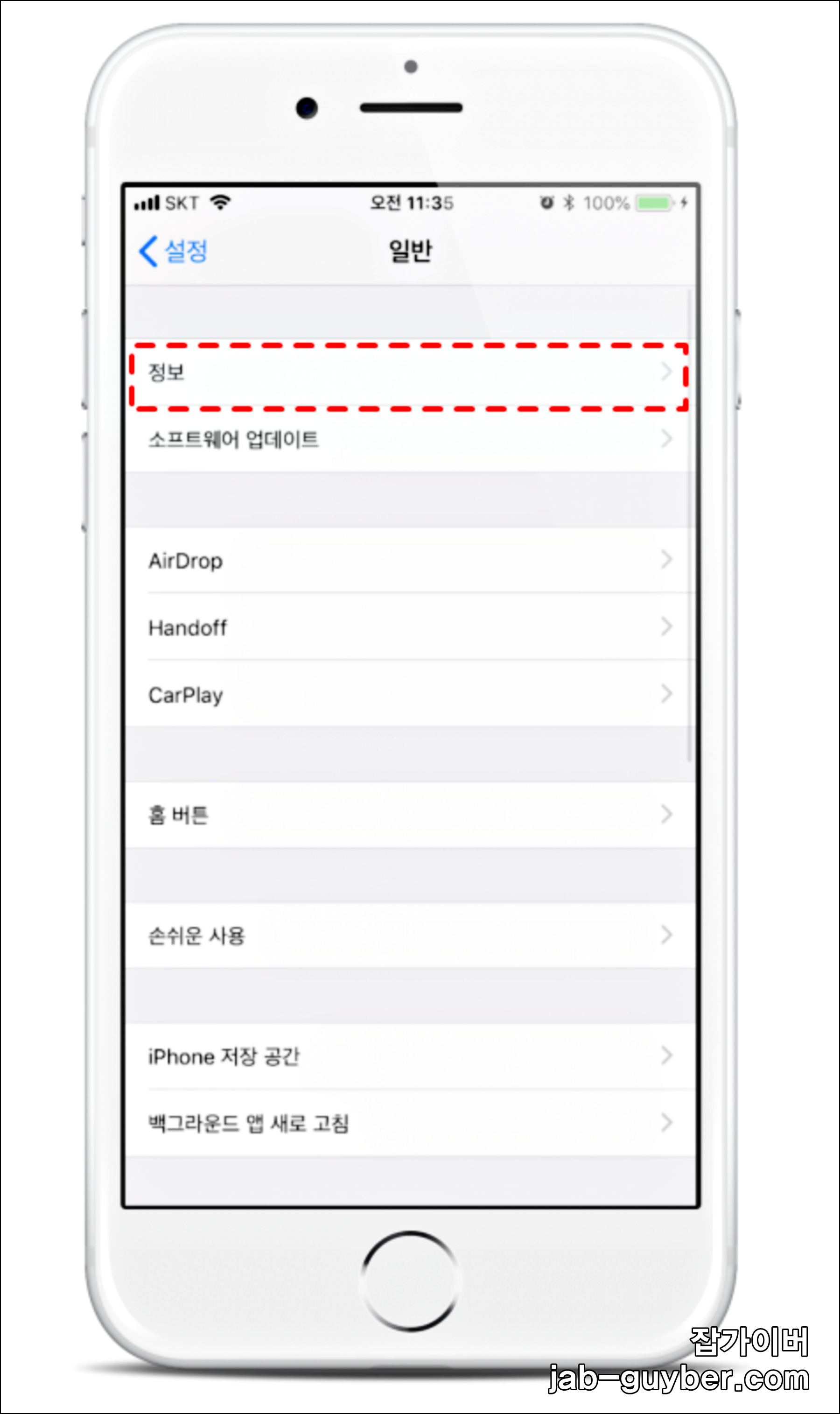 일반 -> 정보 -> 일련번호를 확인할 수 있습니다.