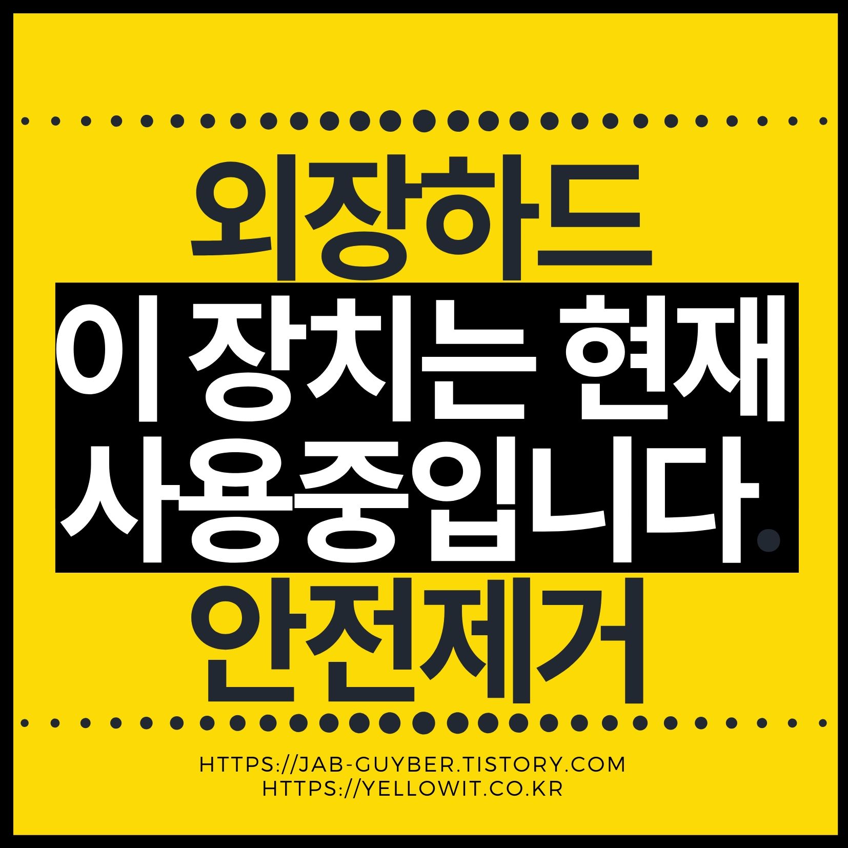 하지만 가끔 "외장하드 안전 제거" 버튼을 선택해도 "이 장치는 현재 사용 중입니다"라는 메시지가 나와 안전 제거가 되지 않는 경우가 있을 수 있습니다.