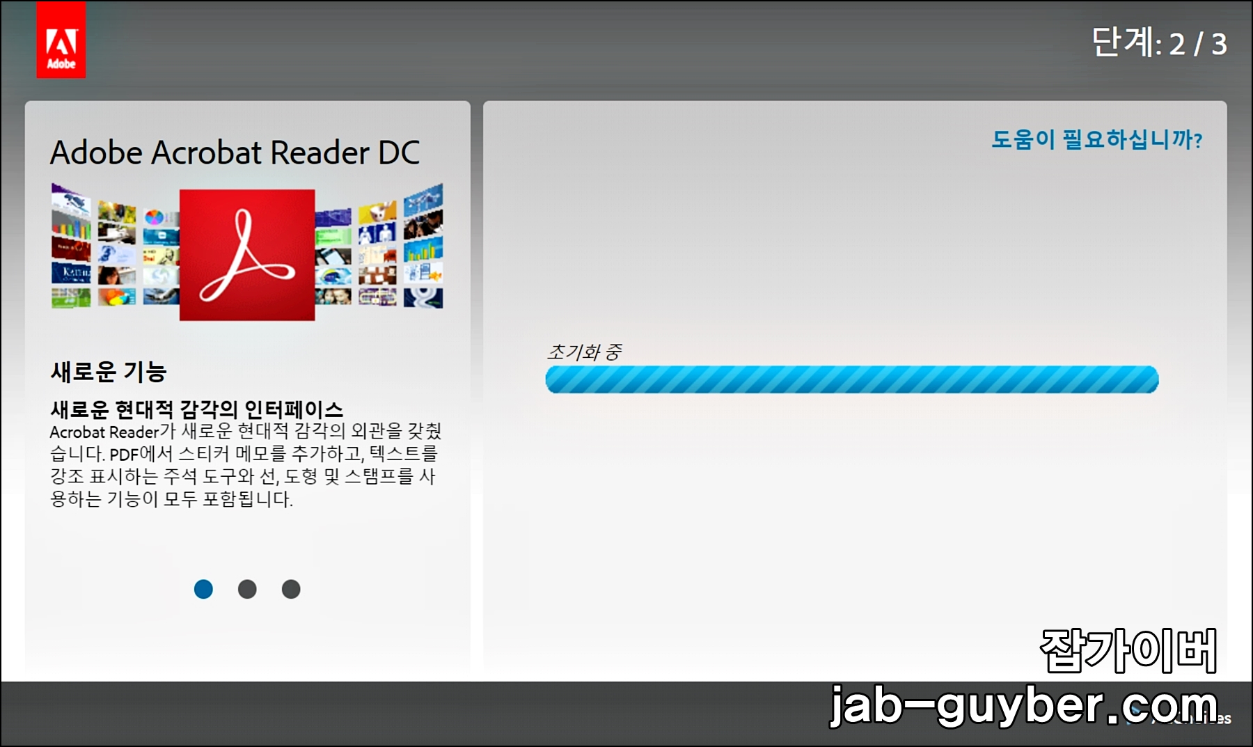 설치 준비가 1차적으로 진행되고 준비가 완료된 다음 아크로뱃이 설치됩니다.