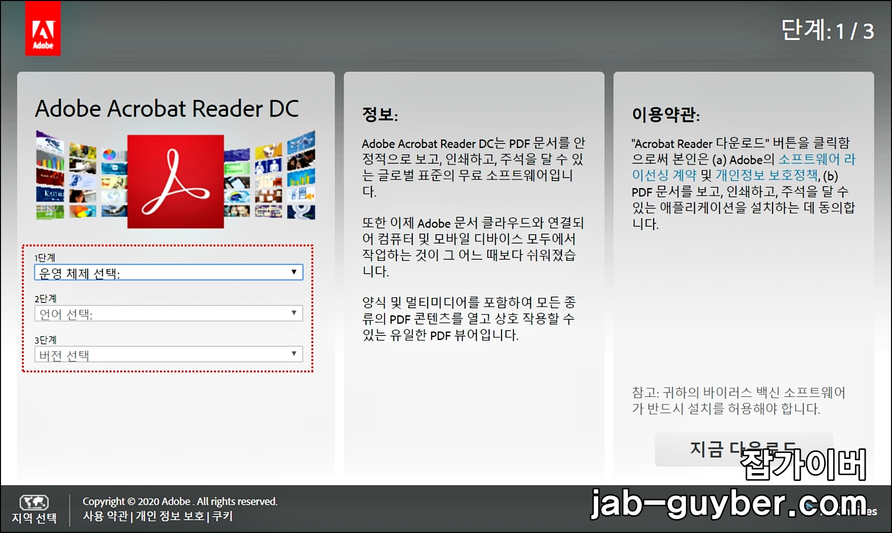 기본적으로 Adobe 사이트를 통해 체험판을 다운로드하고자 한다면 무료 버전인 Adobe Acrobat Reder DC버전을 다운로드할 수 있습니다.