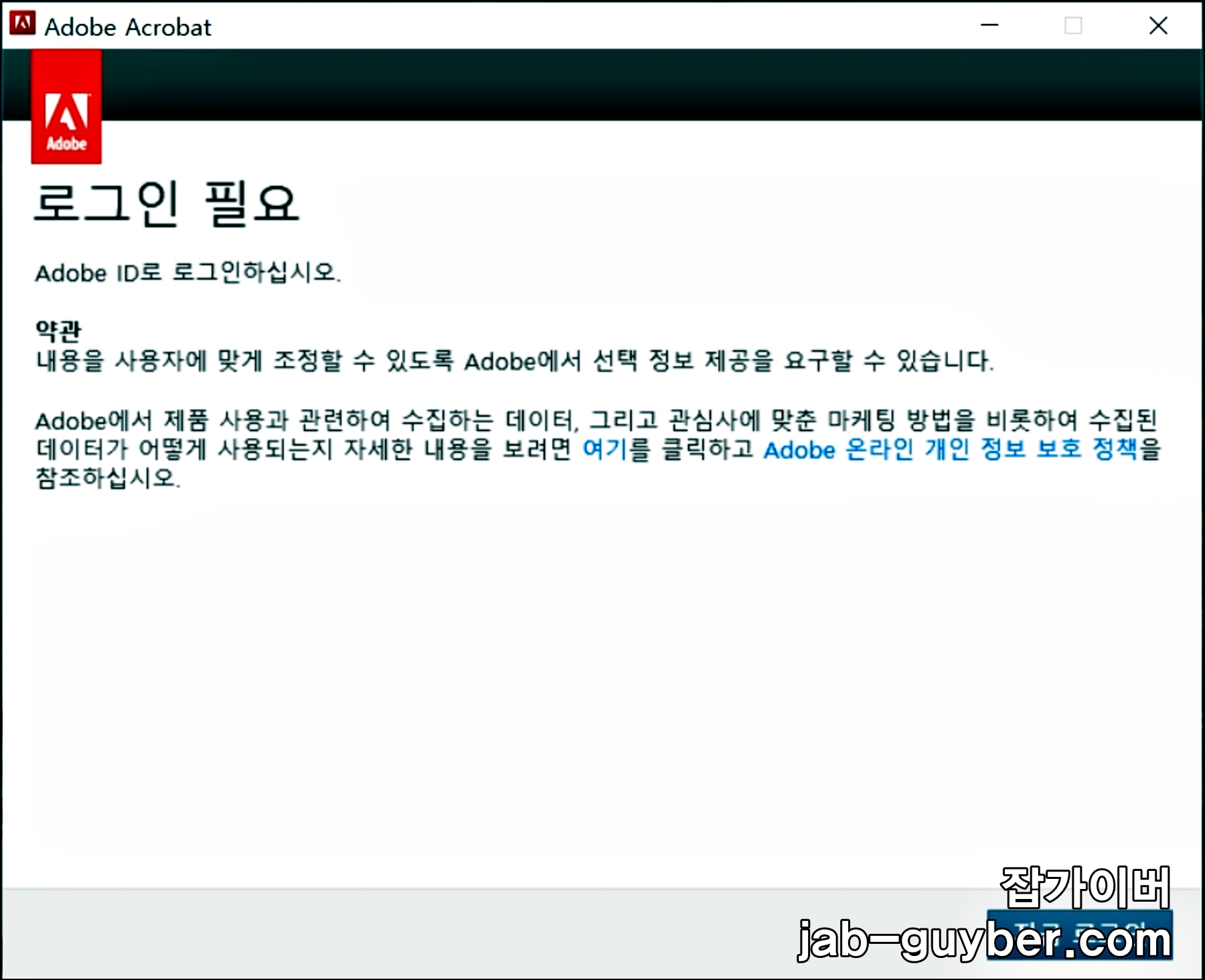설치가 완료되었다면 Adobe Creative Cloud의 계정에 로그인해야 합니다.