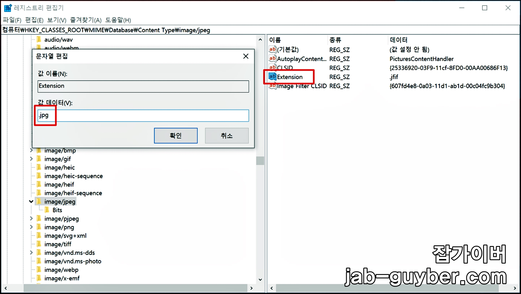 값 데이터(V)에 .jpg 입력 후 확인 버튼을 눌러줍니다.