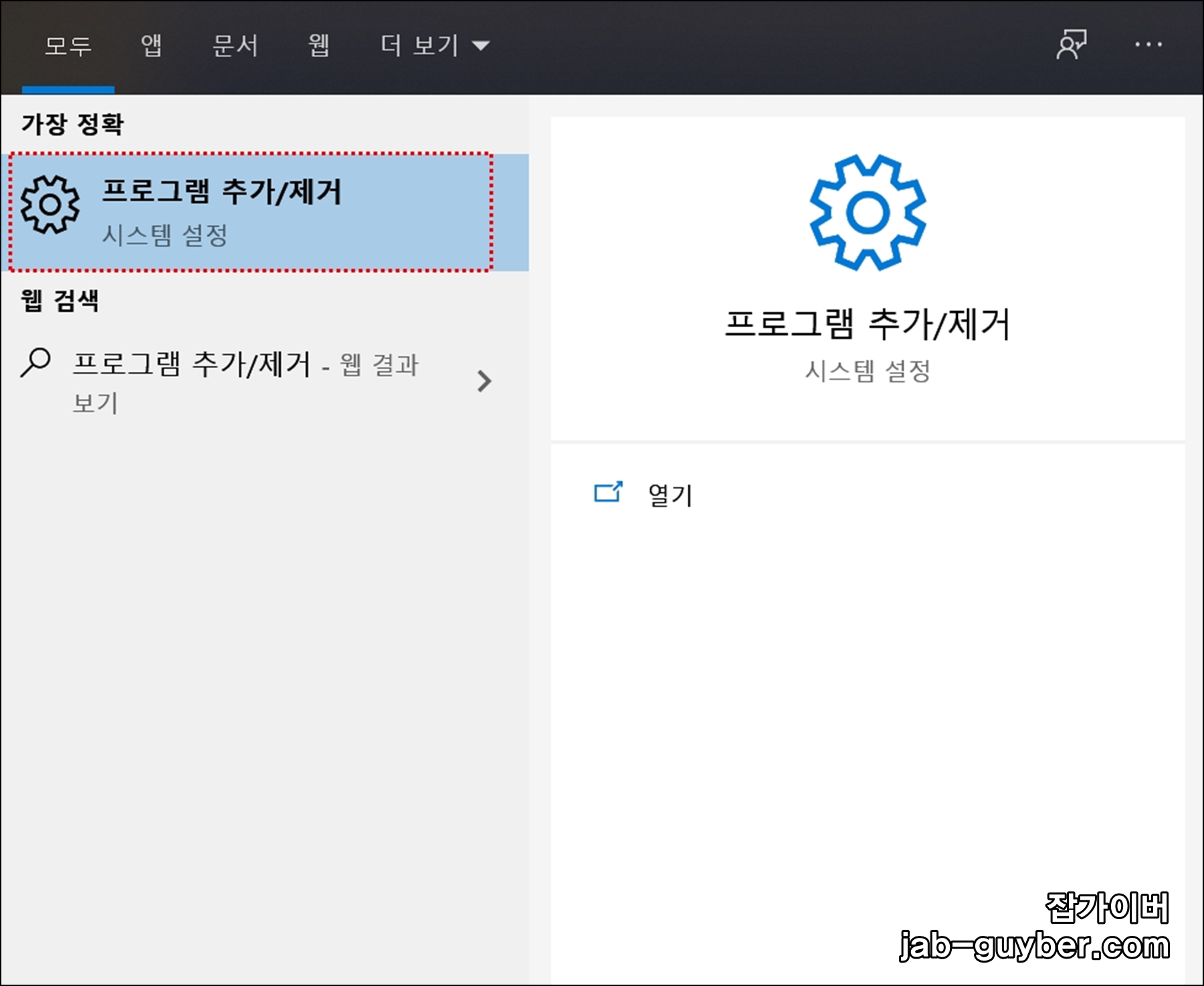- 윈도우 검색창 또는 시작 메뉴에서 프로그램 추가/제거를 입력