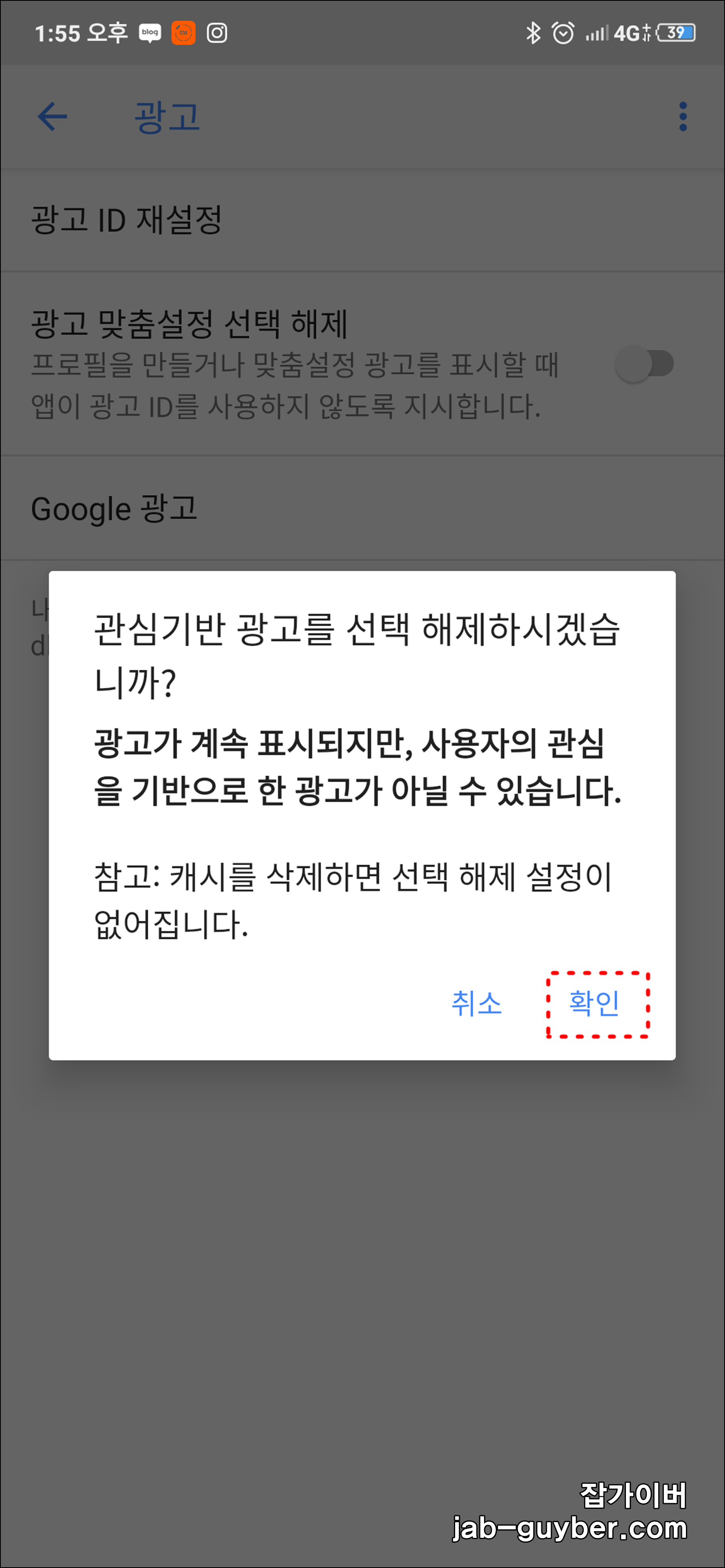 그럼 광고는 계속 표시되지만 사용자의 관심기반의 광고가 아닐수 있다고 합니다.