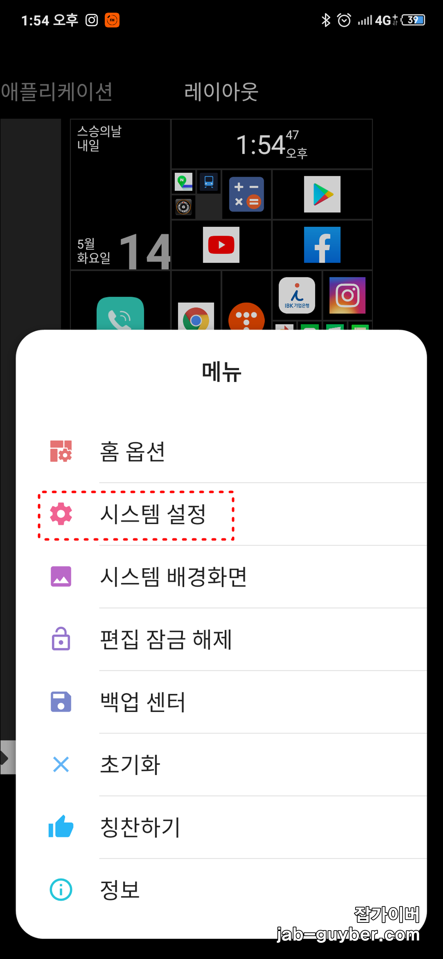 핸드폰을 실행후 "시스템 설정"으로 들어갑니다.