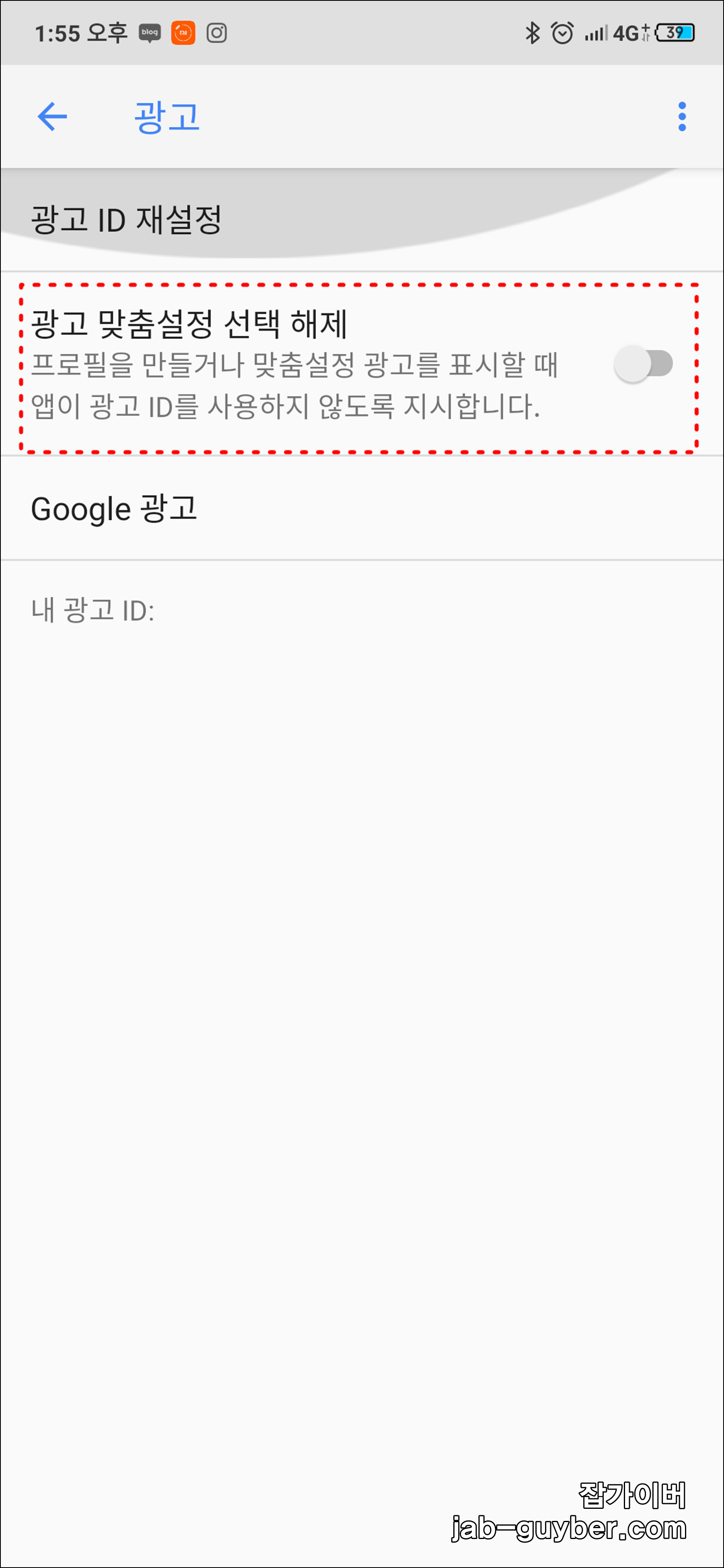 그럼 구글의 광고 ID 재설정항목을 살펴봅니다.