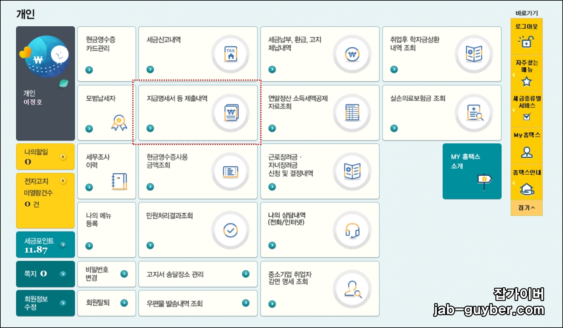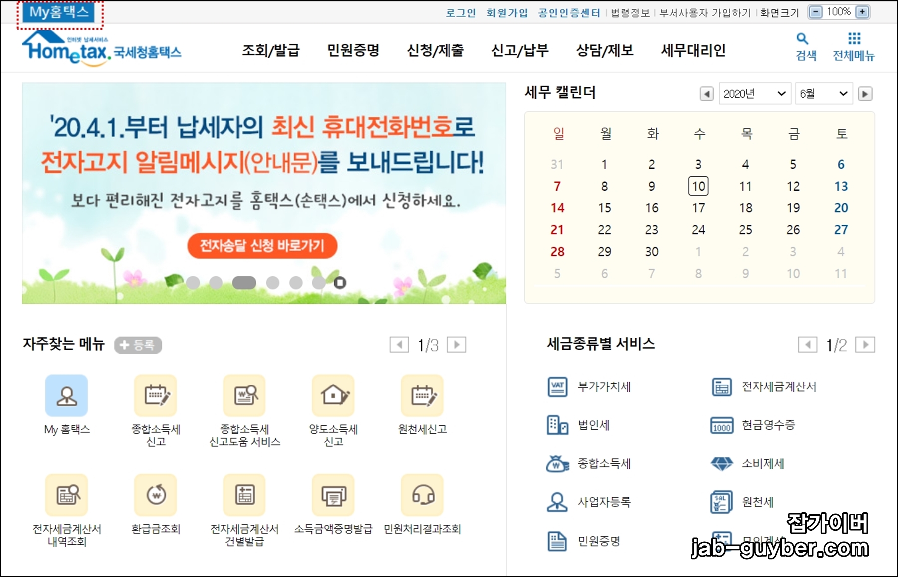 좌측상단에 "MY홈택스"를 클릭합니다.