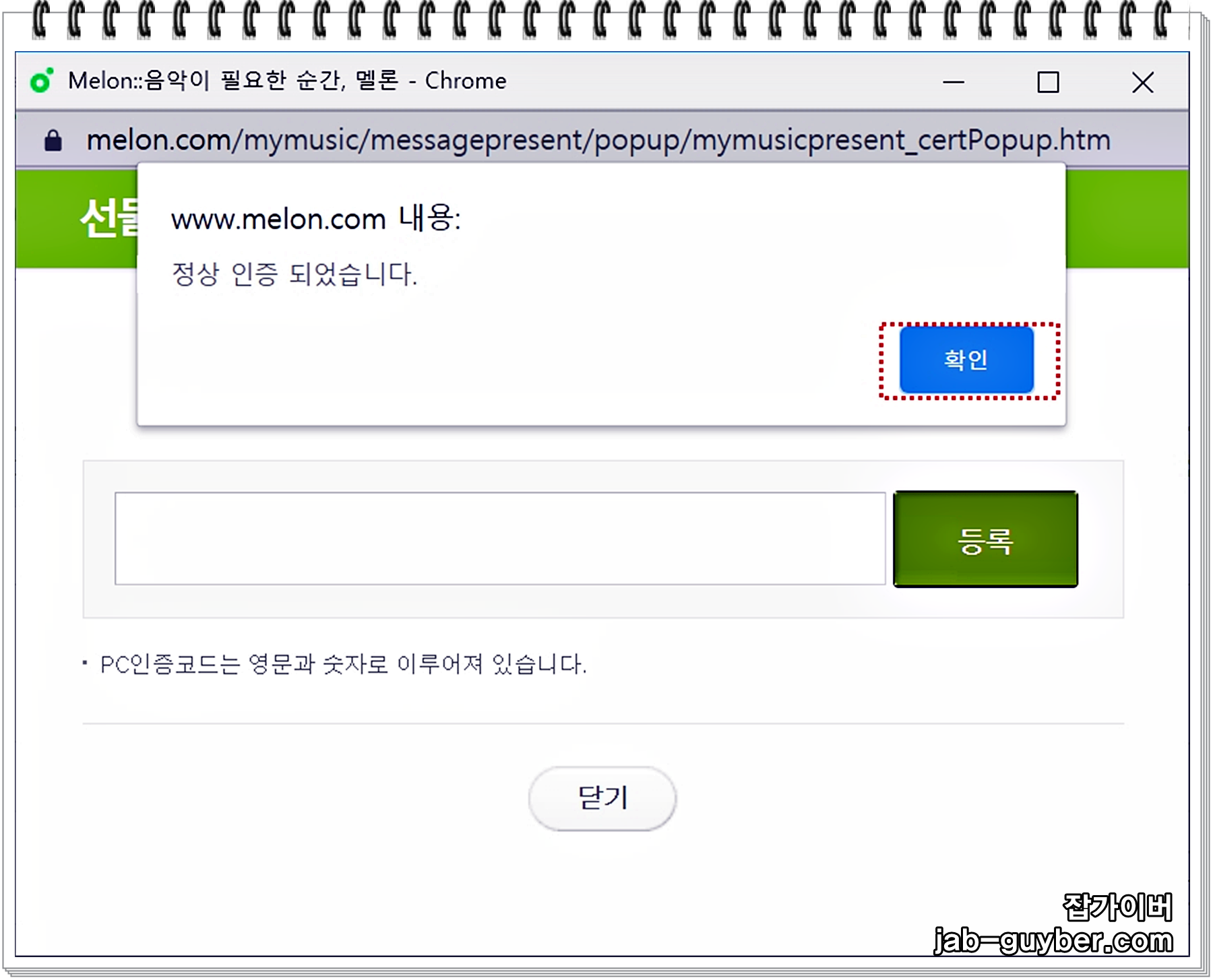 "선물 인증코드 등록하기"버튼을 선택합니다.