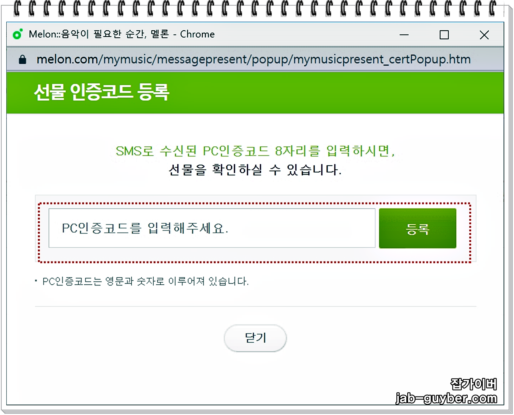그럼 총 8자리의 선물 인증코드를 입력하는 부분이 보입니다.