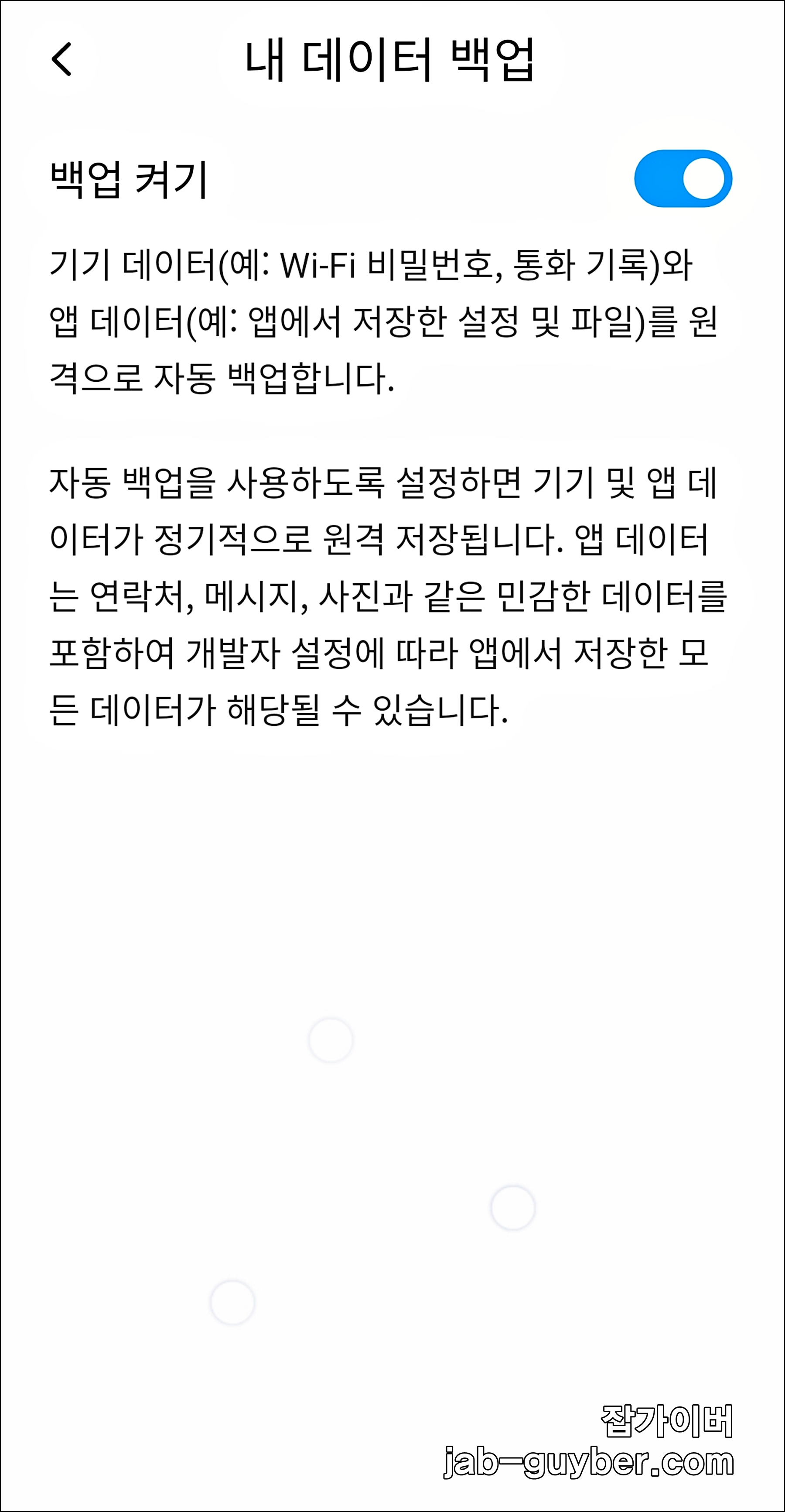 내 데이버 백업을 통해 와이파이와 비밀번호 통화기록 등을 자동으로 백업할 수 있습니다.
