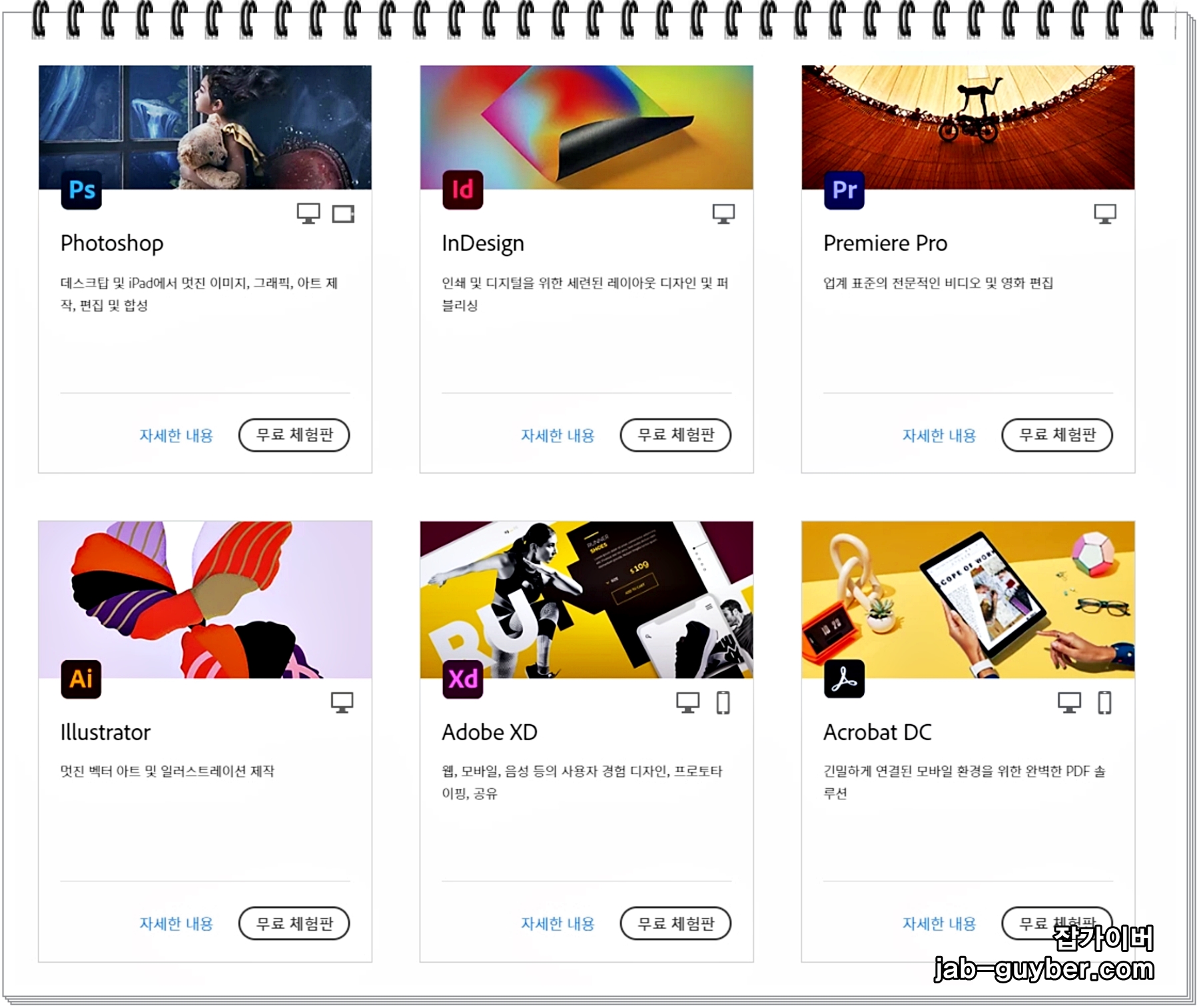 Adobe 사이트에 접속해서 프로그램을 구입하거나 7일간 제공하는 무료체험판을 다운로드 받을 수 있습니다.
