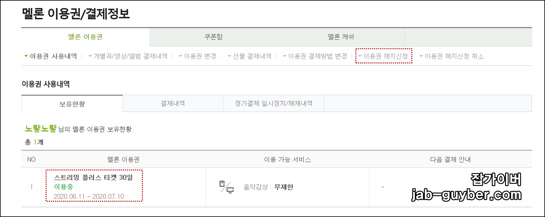 멜론 이용권 해지 스트리밍 정기결제 취소