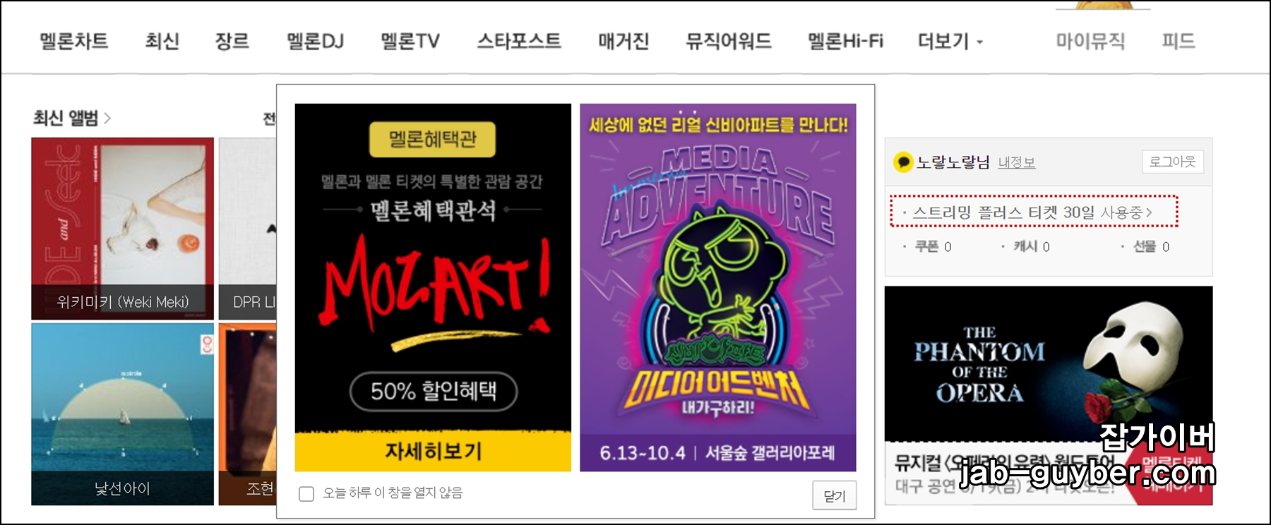 그럼 로그인한 정보에서 현재 사용 중인 "멜론 이용권"을 확인할 수 있습니다.