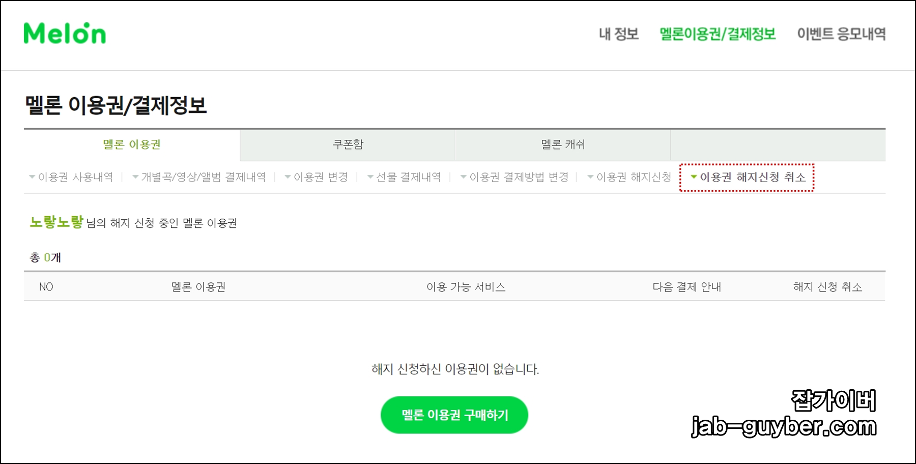 멜론 이용권 해지신청방법