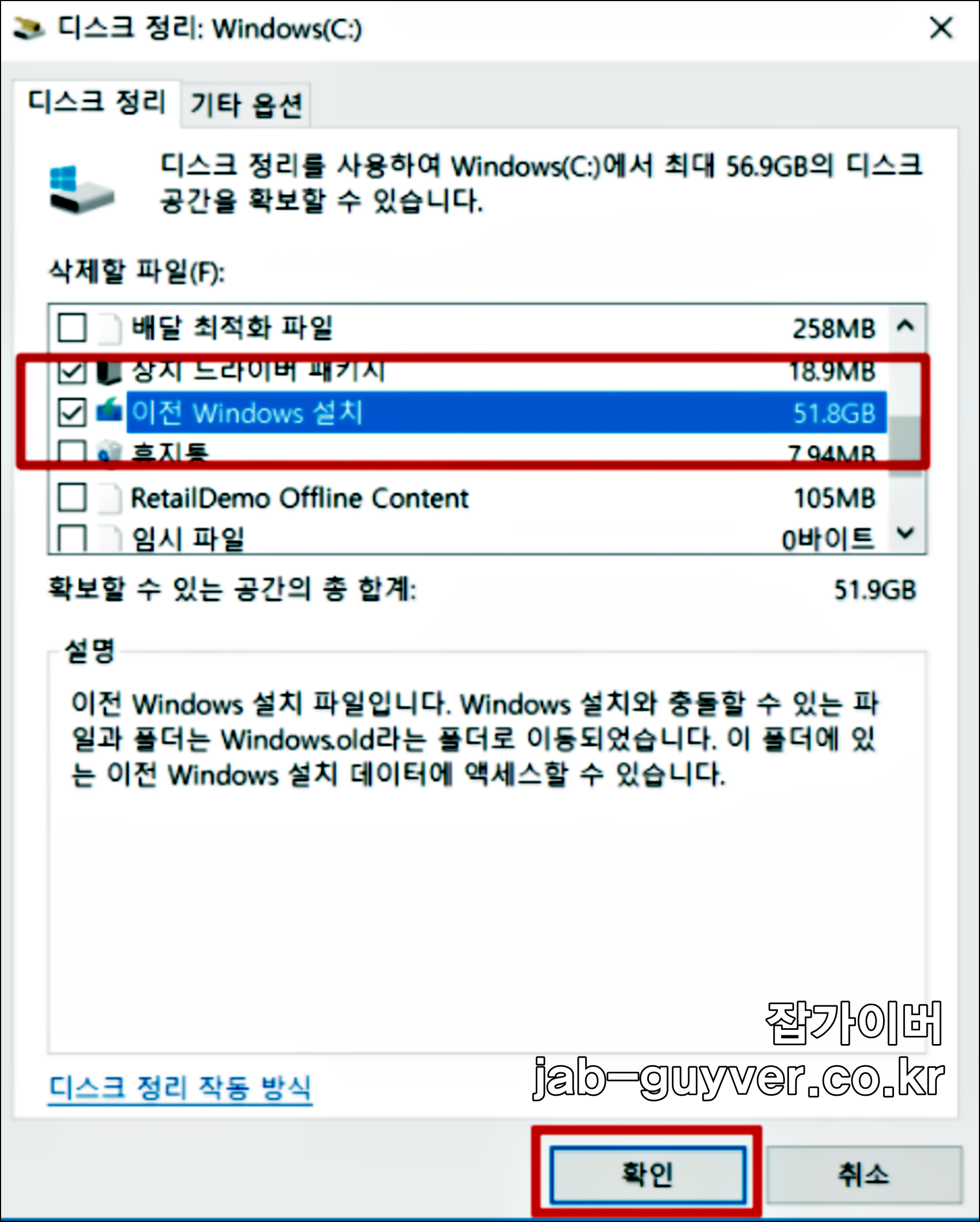 Windows.old(이전 Windows 설치) 지워서 용량 크게 확보