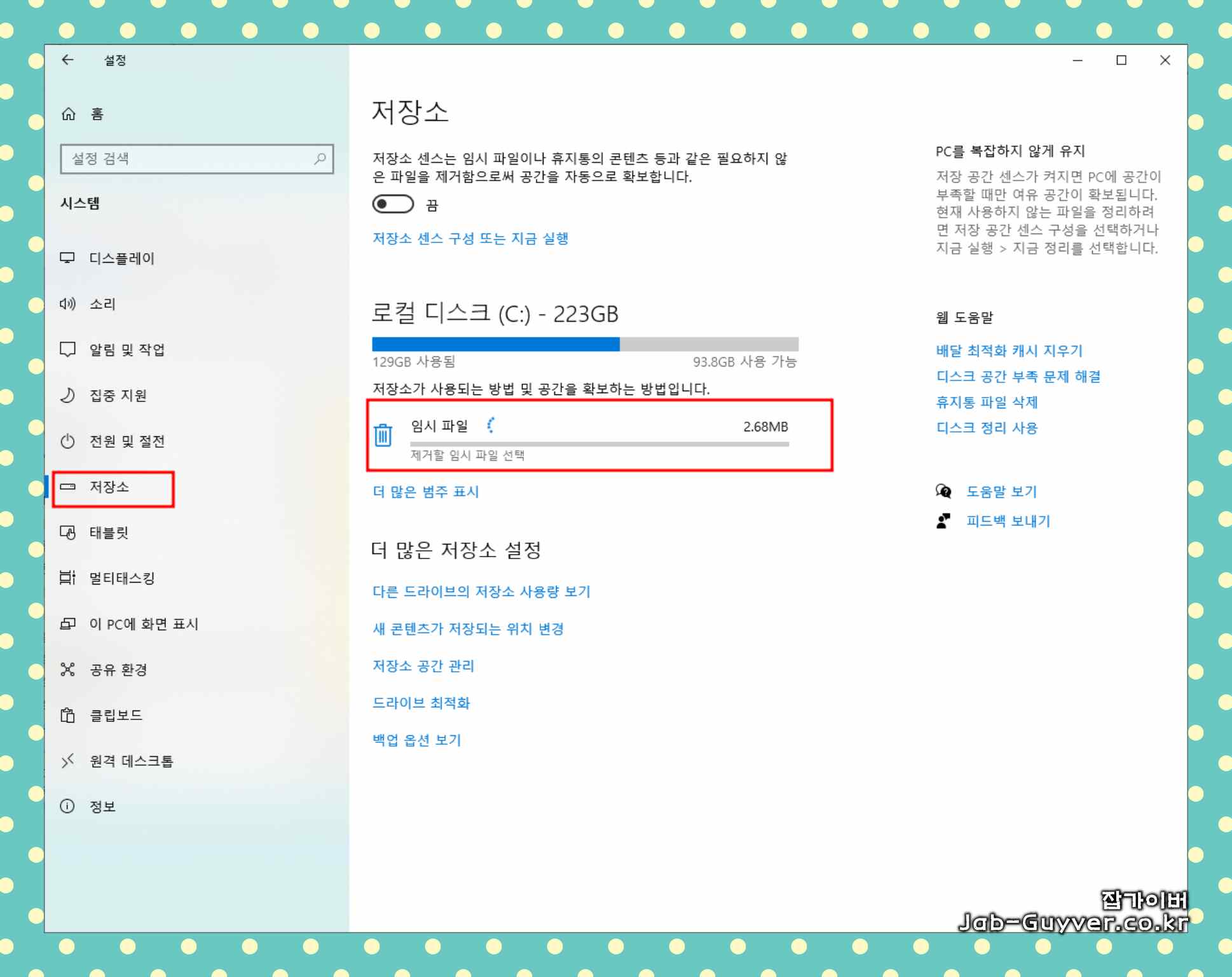 설정(저장소)에서 임시 파일을 정리하면 더 깔끔함