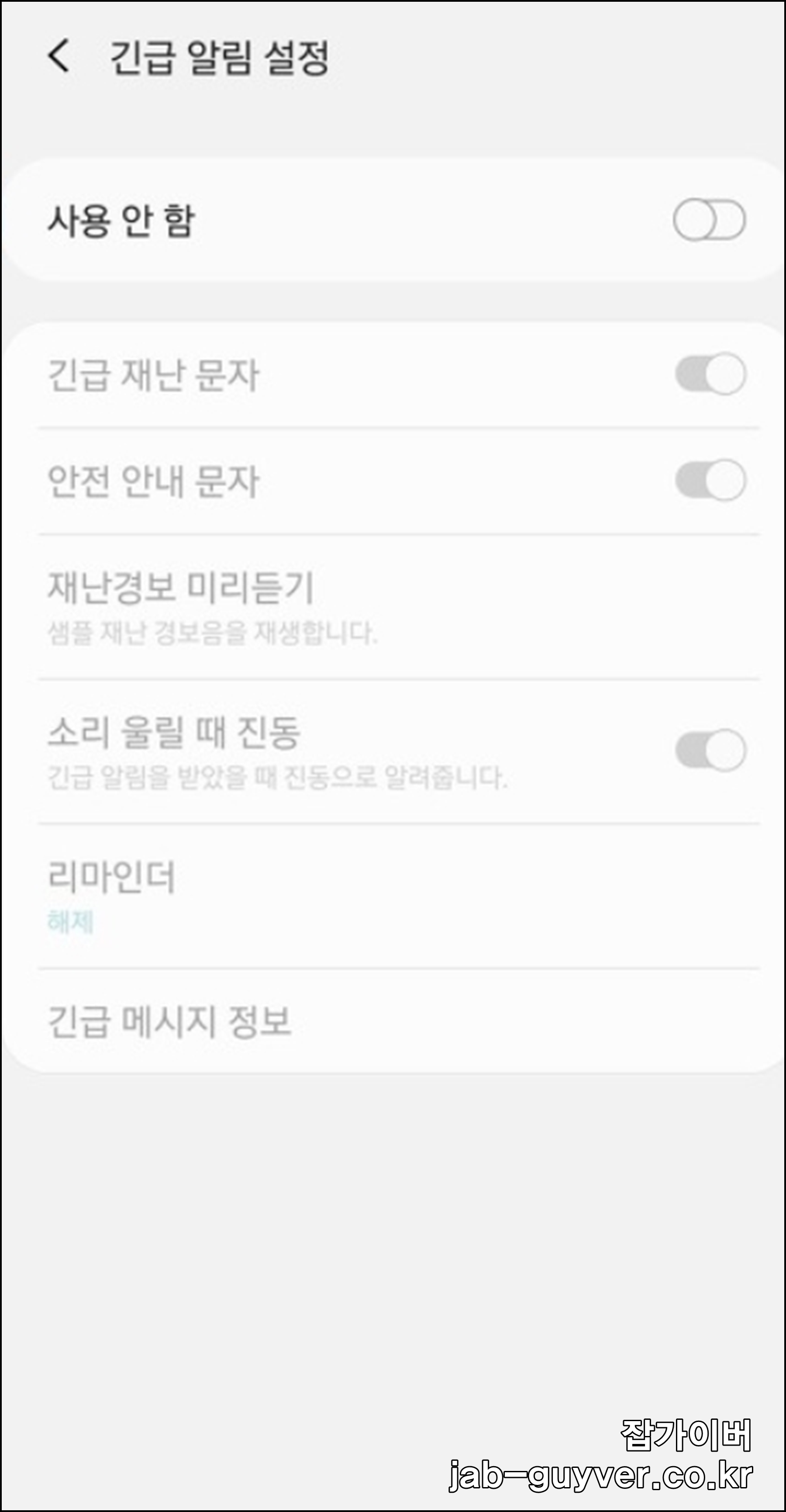 갤럭시노트 긴급재난문자 알림 끄기 설정방법