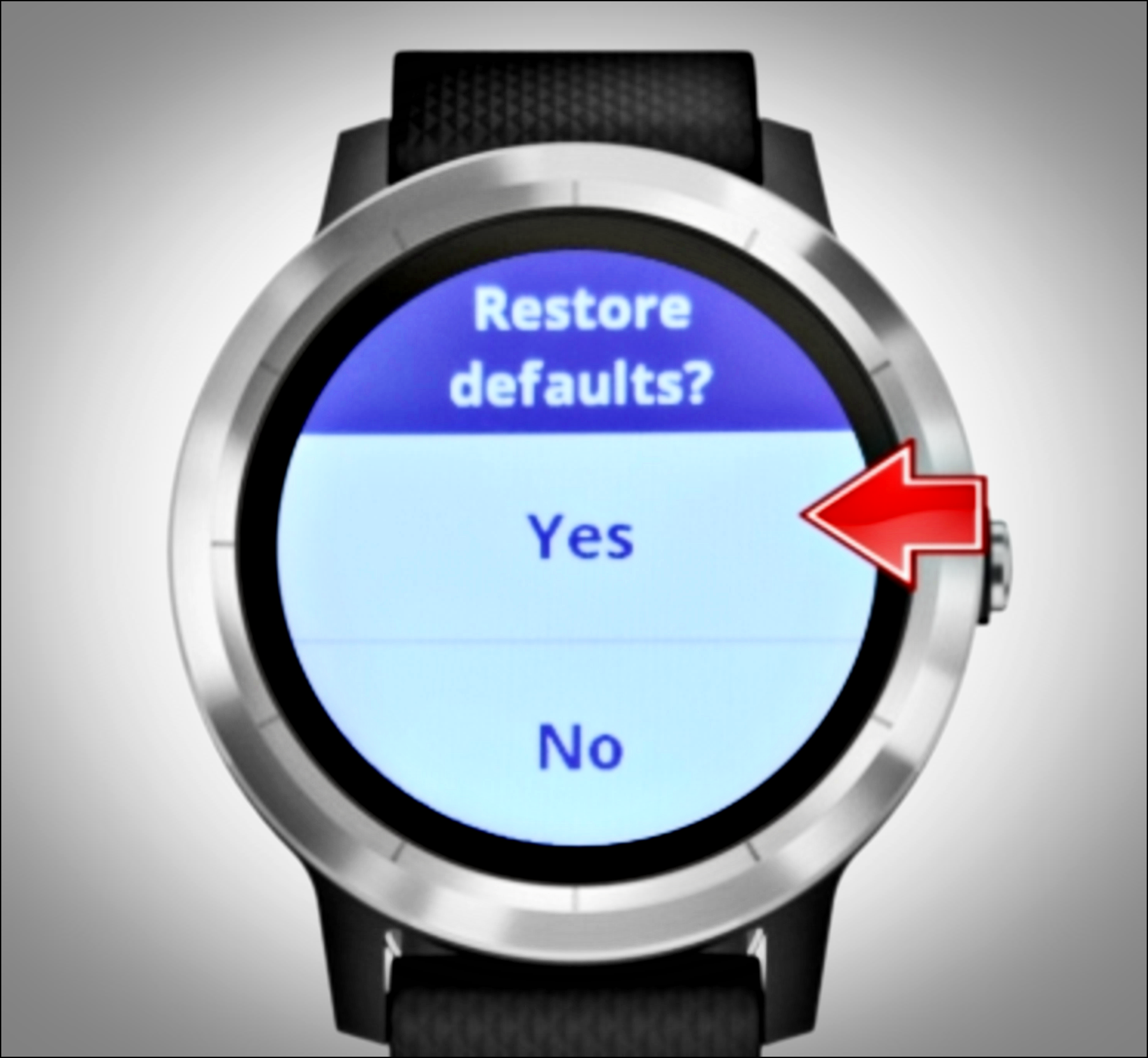 가민 System -> Restroe Defaults -> Yes를 눌러주면 가민워치의 초기화가 진행됩니다.