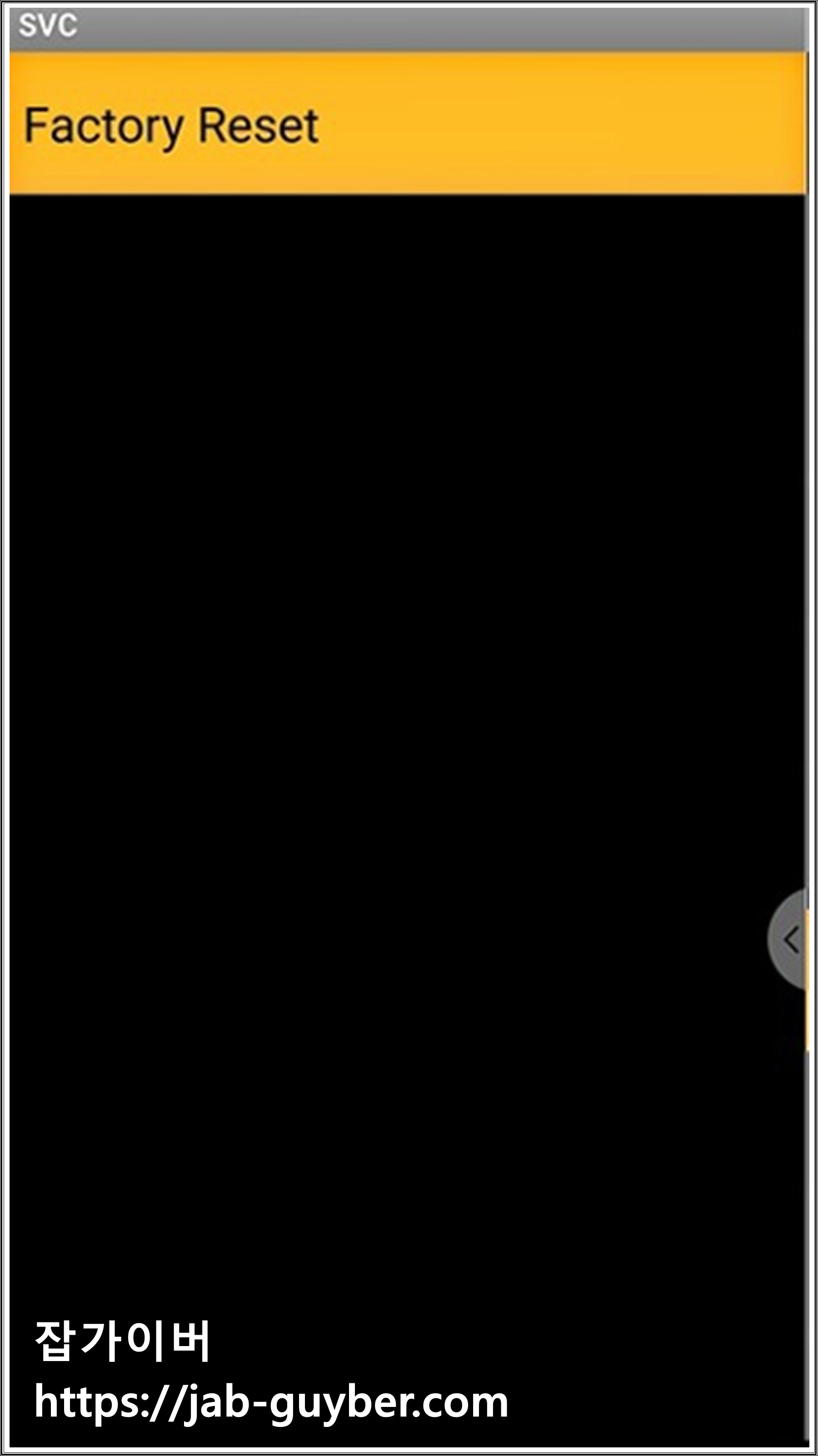 | HiddenMenu Factory Reset | 관리자 메뉴 접근 가능한 모델 / 테스트용 초기화 | 통신사 커스텀/보안 정책으로 막혀 있는 모델도 있습니다 |