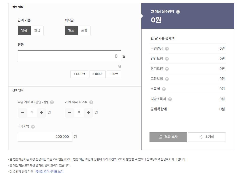 연봉 실수령액 계산기 사용법 정리