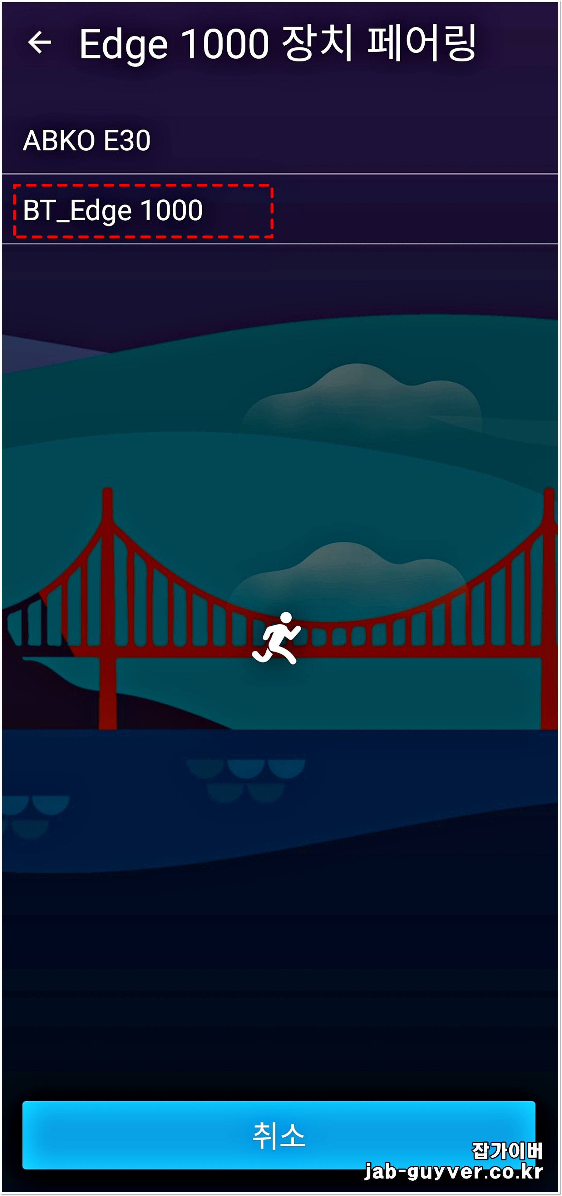 그 다음 화면에서 앞서 설정해 둔 기기의 별칭, 예를 들어 BT_Edge 1000 같은 이름이 떠야 정상입니다. 여기에서 해당 기기를 선택하면 스마트폰과 시계가 서로 인증을 진행합니다.