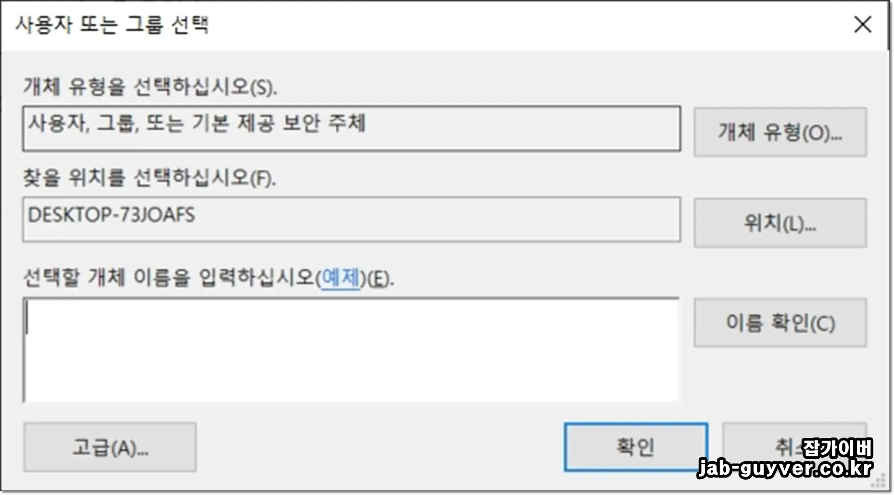 “사용자 또는 그룹 선택”에서 원하는 계정(또는 그룹)을 지정해 권한을 줄 수 있습니다.