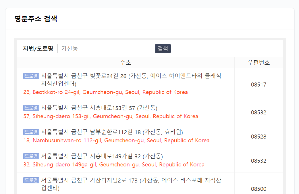 영문주소 변환 방법