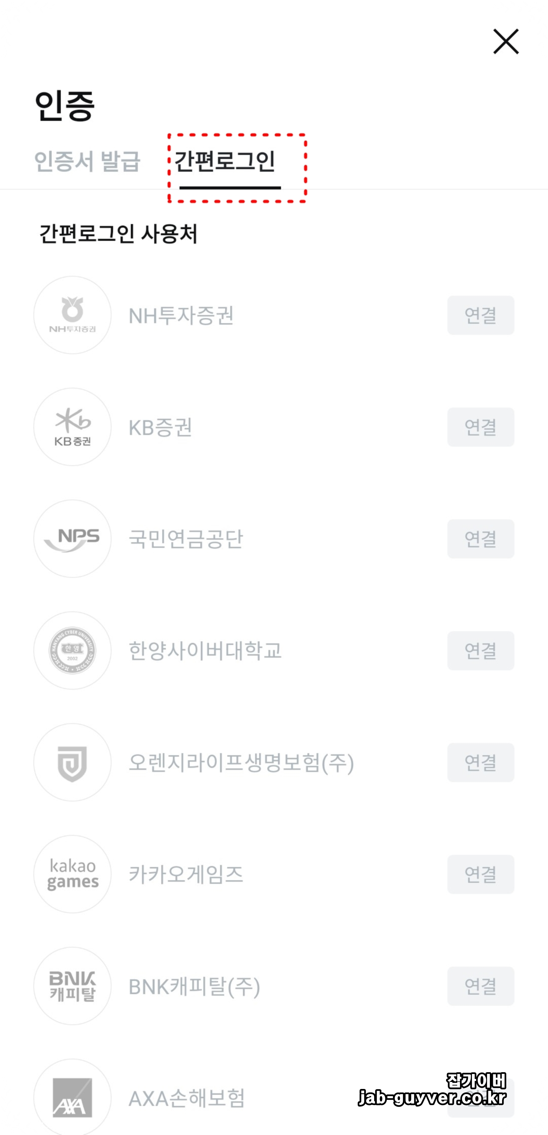 카카오페이 인증서를 기반으로 간편로그인을 설정해 두면, 국민연금공단·카카오게임즈·보험사·증권사 등 여러 사이트에서 별도의 공동인증서 비밀번호를 입력하지 않고도 카카오톡 알림만으로 바로 들어갈 수 있어서 체감 편의성이 꽤 큰 편입니다.