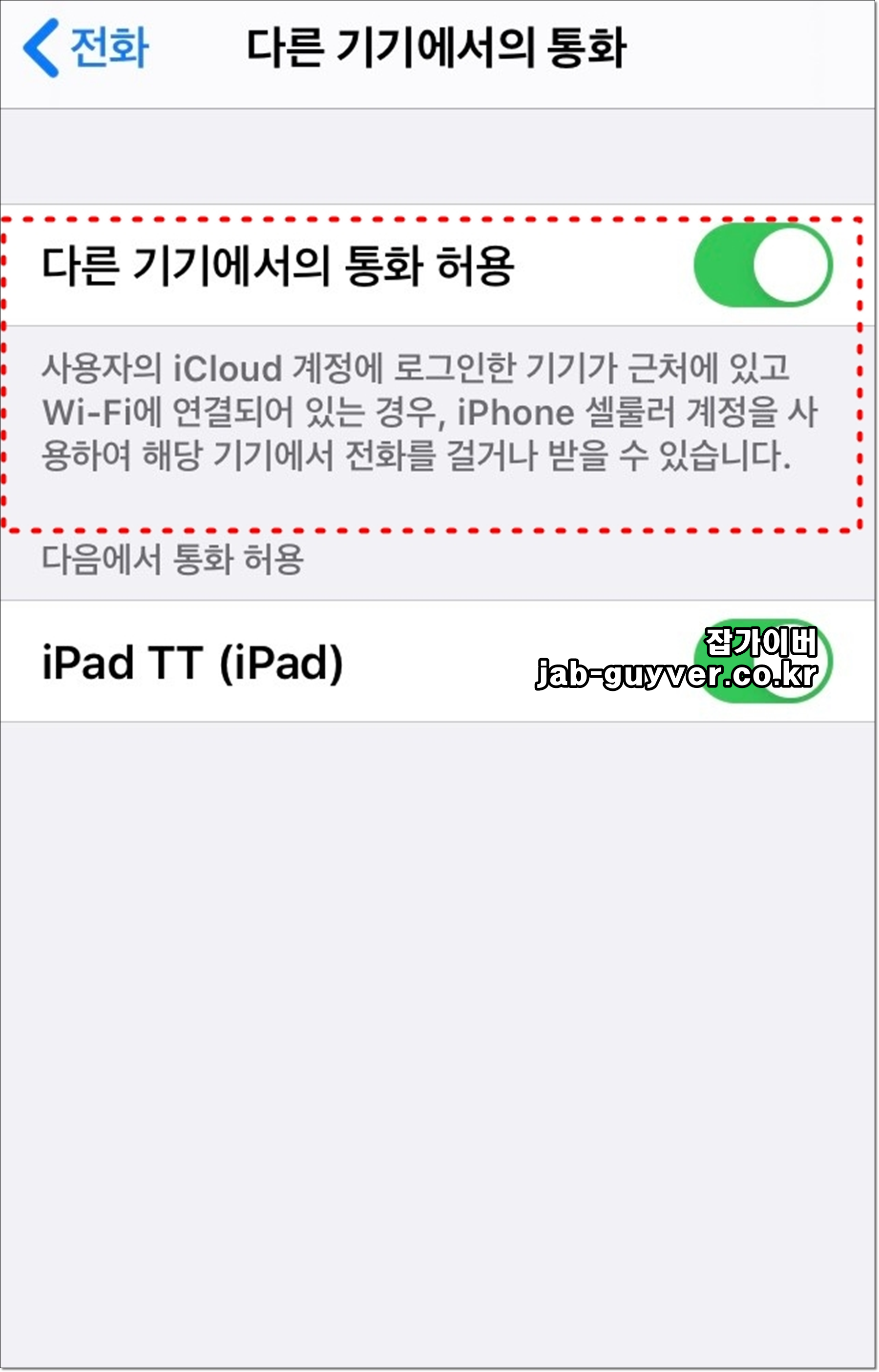선택해서 다른기기에서의 통화허용을 체크해줍니다.