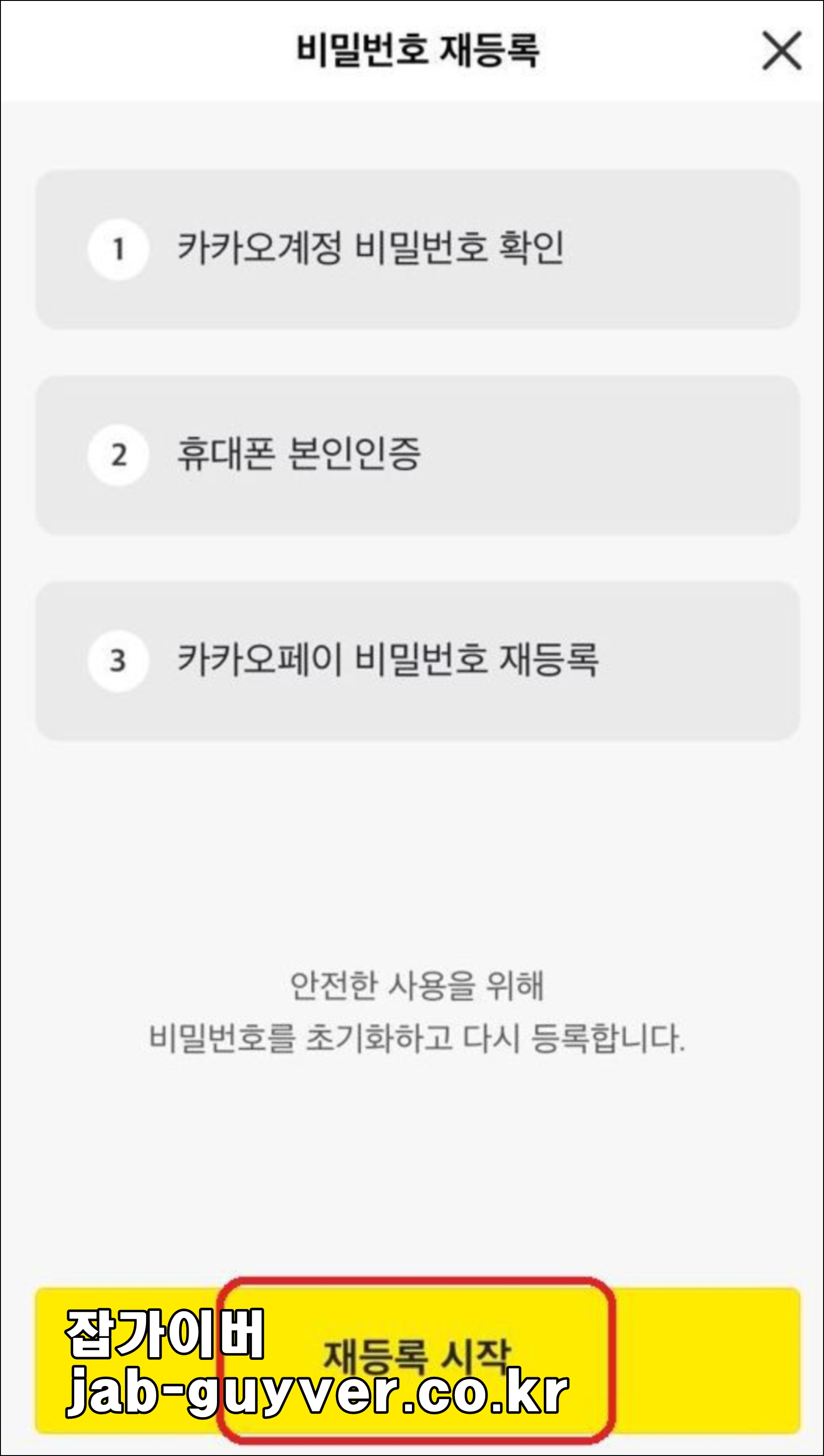 그런데 기존에 지원하던 카카오페이 비밀번호 찾기기능에서 비밀번호 변경을 위해서는 초기화 후 새롭게 등록해야 하기 때문에 본 방법을 알아보겠습니다.