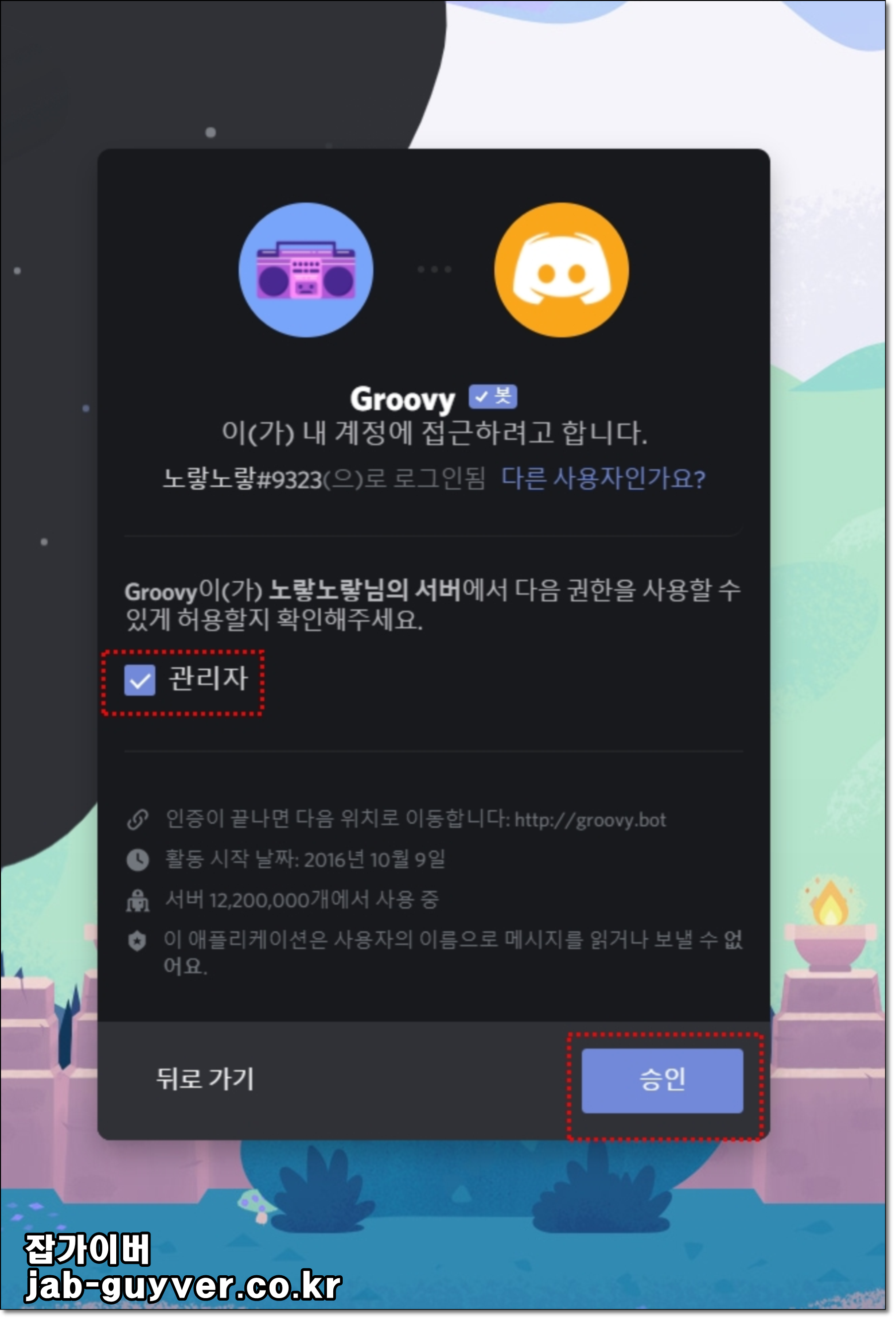 디스코드 노래봇 그루비 추가