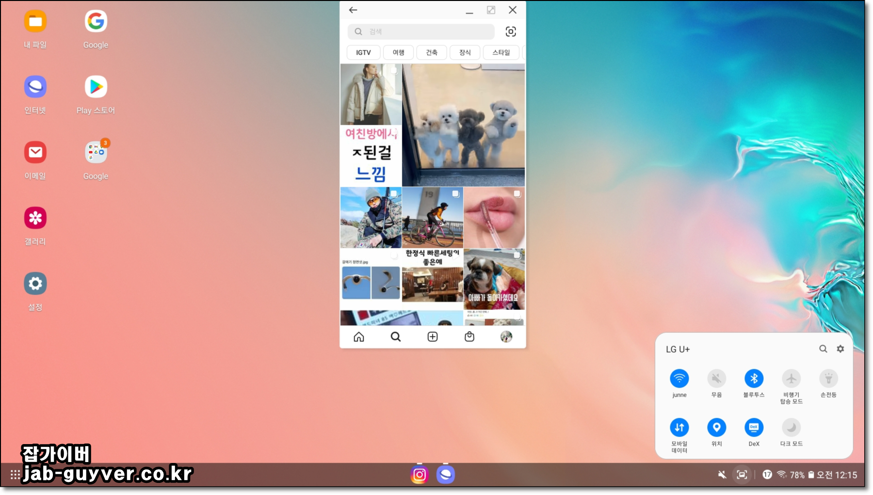 모바일 전용인 인스타그램 등도 큰 화면을 통해 갤럭시 미러링을 사용할 수 있습니다.