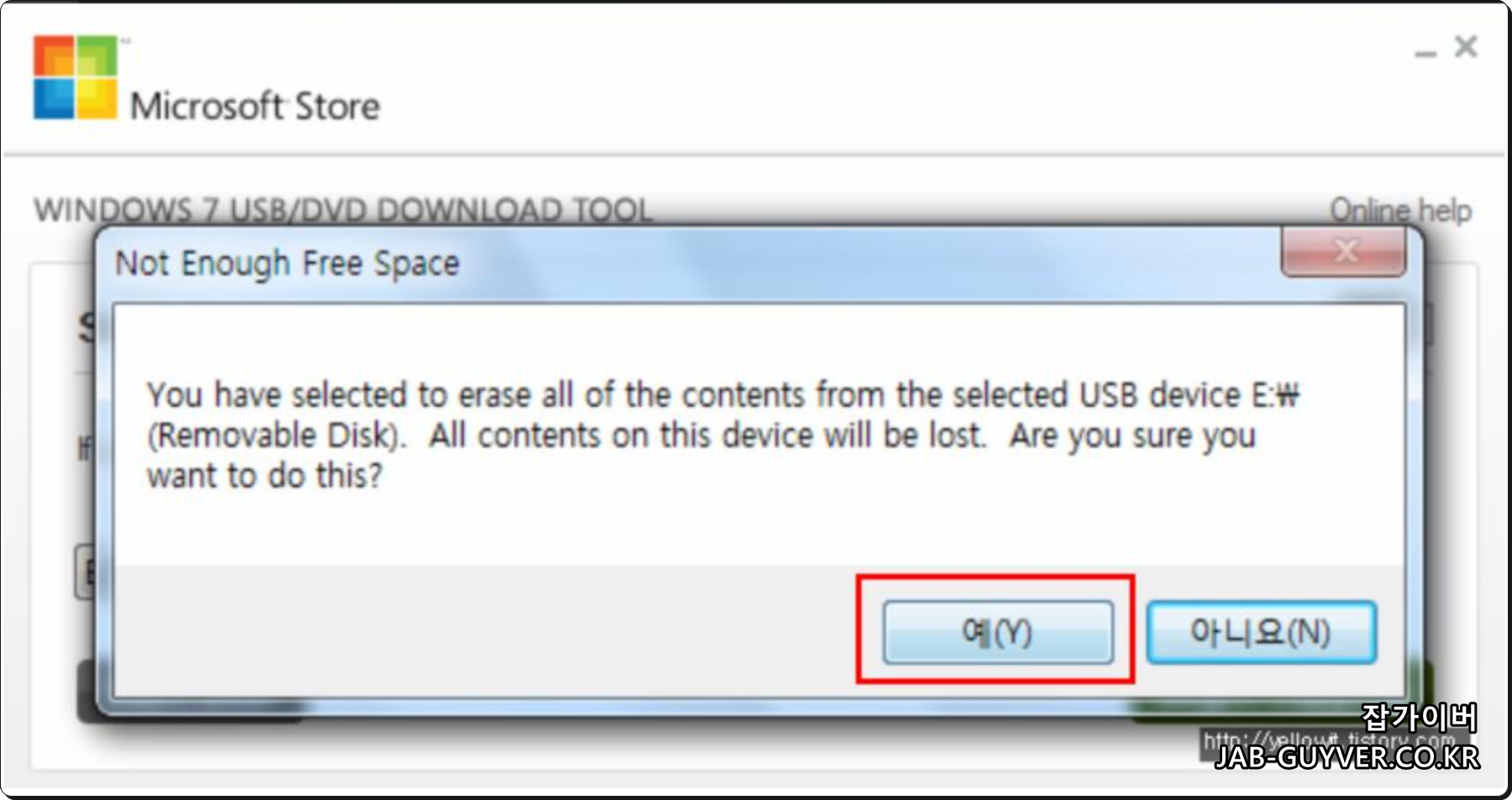 usb 안에 있는 내용물을 지우고 윈도우7 usb 부팅디스크를 만들어지기 때문에 중요한 파일이 있다면 미리 백업을 합니다.