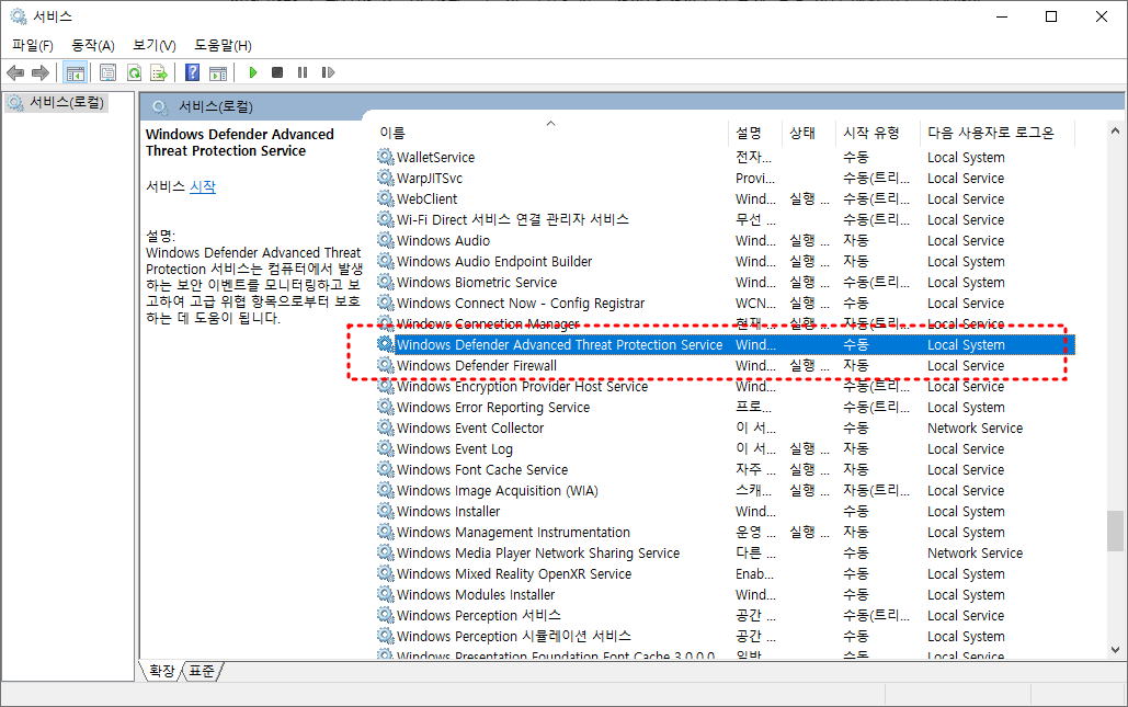 윈도우는 핵심 보안 서비스가 꺼진 경우 자동 복구 기능을 통해 서비스 상태를 복원합니다.