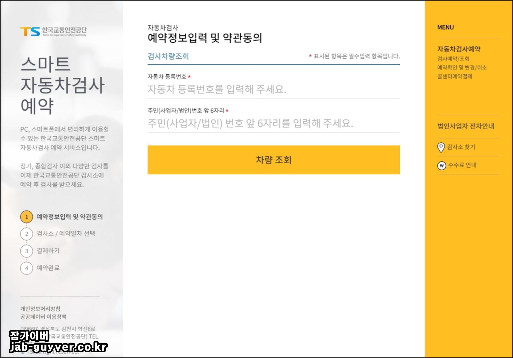 - 자동차 검사 메뉴에서 예약으로 들어갑니다.