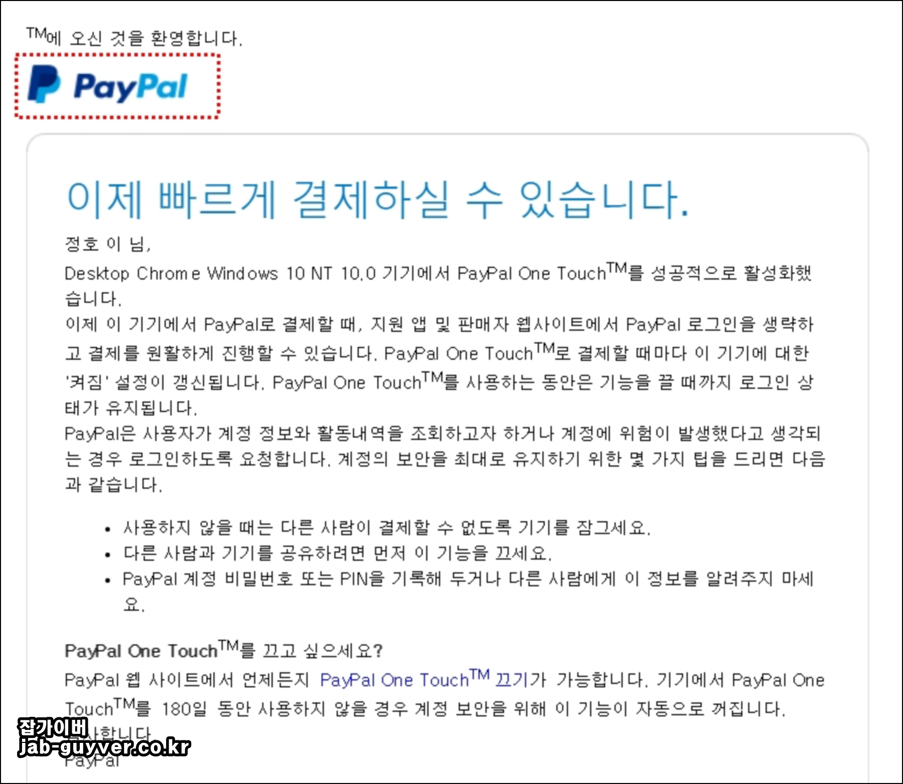 메일로 전달된 페이팔 로고를 클릭하면 모든 인증이 완료되었습니다