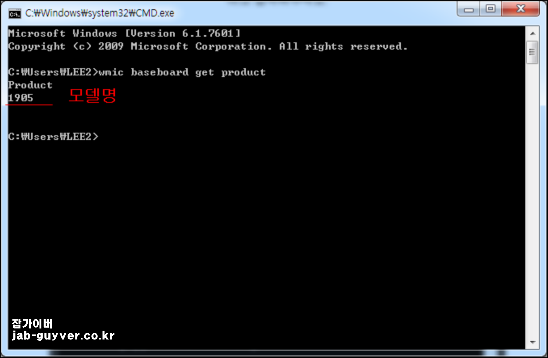 실행된 CMD 창에 메인보드를 확인할 수 있는 명령어인 "wmic baseboard get product"라고 입력합니다.