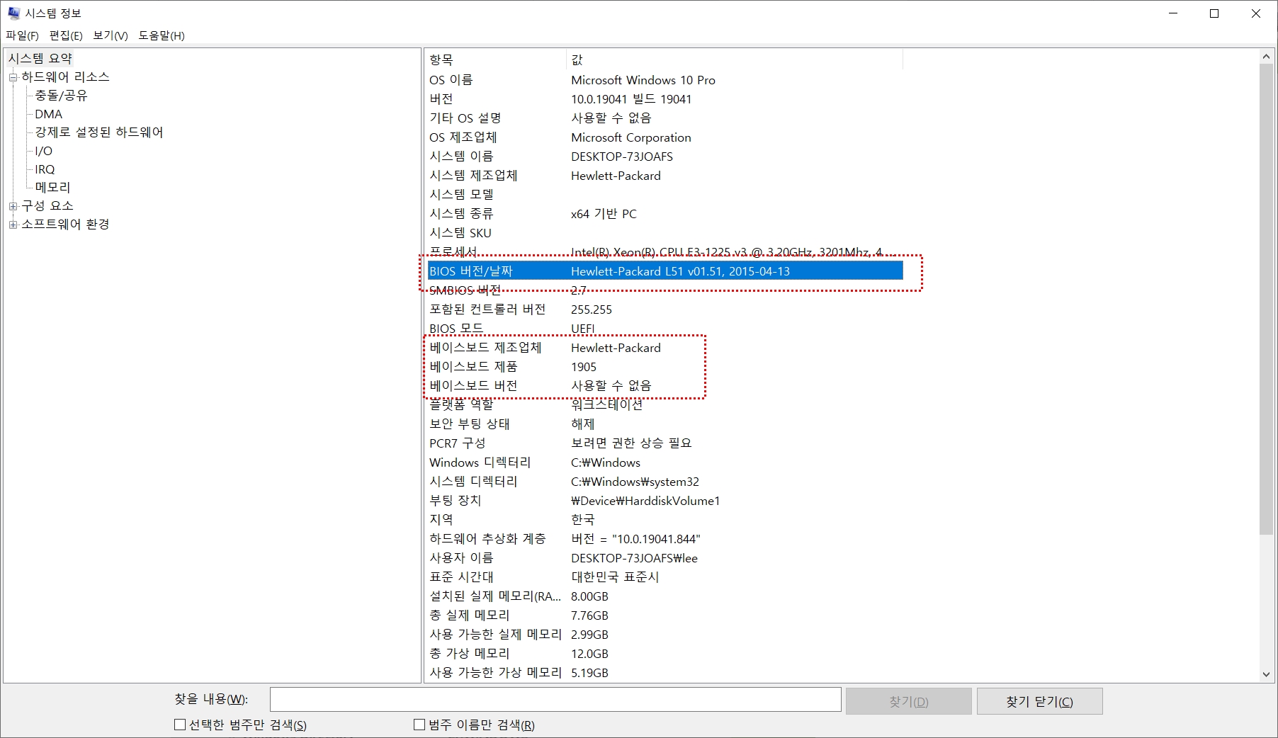 메인보드 확인 - 모델명 바이오스 버전 제조사 시리얼번호